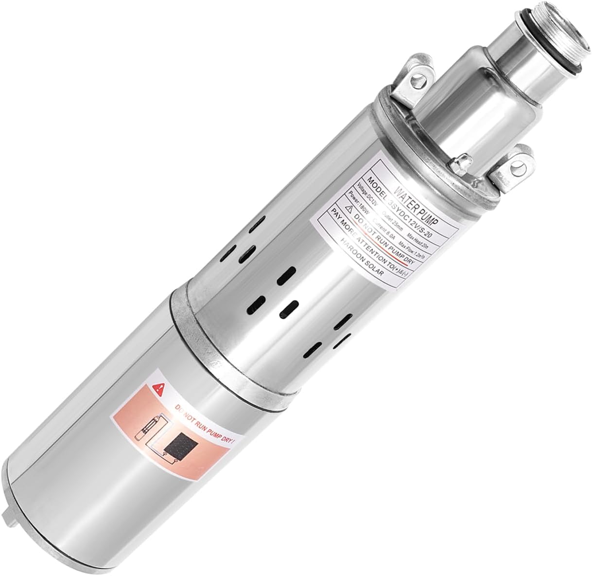 - ăPREMIUM WATER PUMPăThe body and motor shaft of this submersible deep well pump are made of selected stainless steel with a fine texture, and the pump wall is thickened that is not easily deformed. Stainless steel base adopts high precision steel snap ring spring, which is effective against compression, impact and deformation.