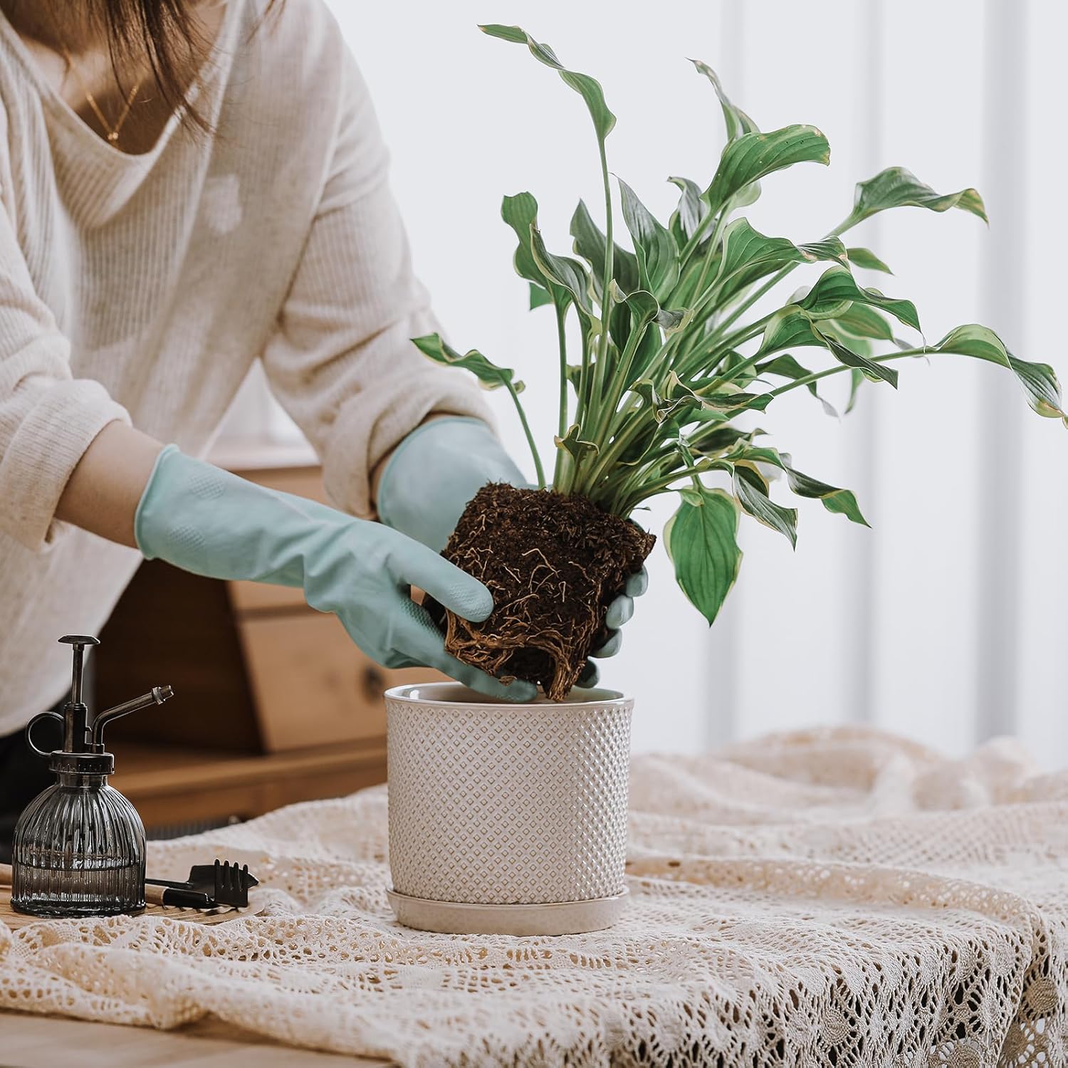 - Outstanding Design: The creamy white color of the plant pot, with its beaded embossed surface, provides a sophisticated and rustic beauty; the embossed not only provides a non-slip surface, but also adds depth to the rich, making it an striking focal point in any setting