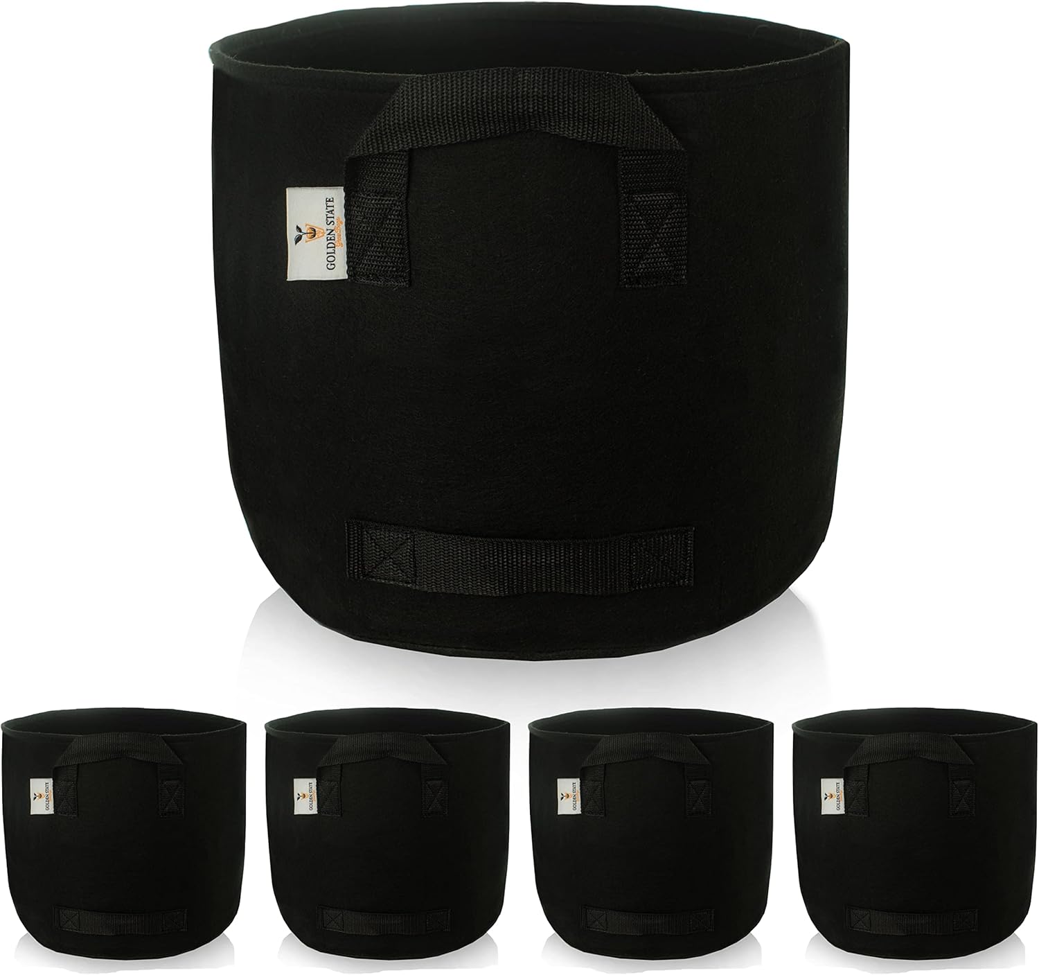 Grow Bags: 5-Pack (Size: 5 Gallon): 300gsm Black Felt Fabric, Biodegradable and eco-Friendly Material. (Handles + Dumping Handles-pat.Pend).