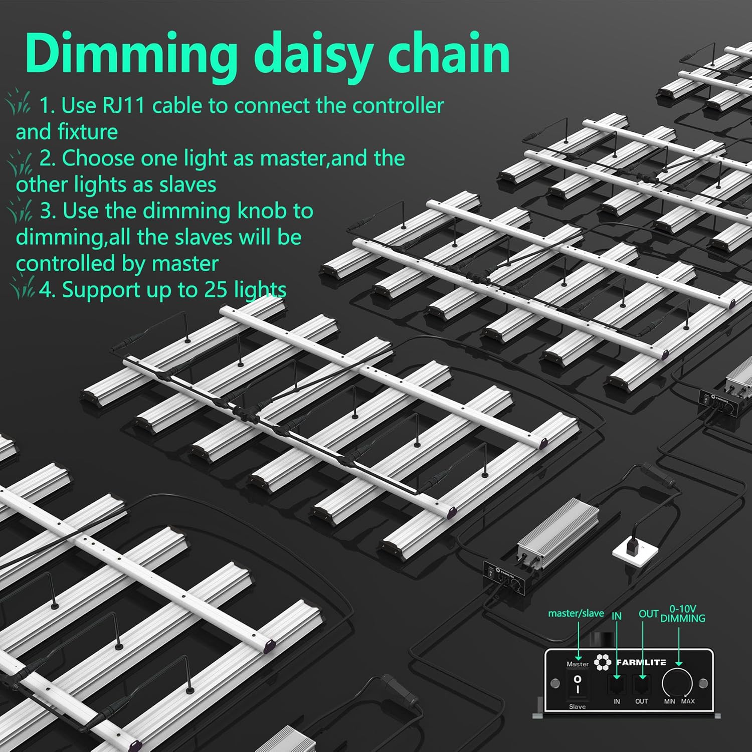 - 【Daisy-Chain Dimming】This grow light for indoor plant has a dimming button to adjust the light intensity required for different plant growth stages.The daisy-chain function allows you to connect up to 25 LED grow lamps and can be dimmed simultaneously.
