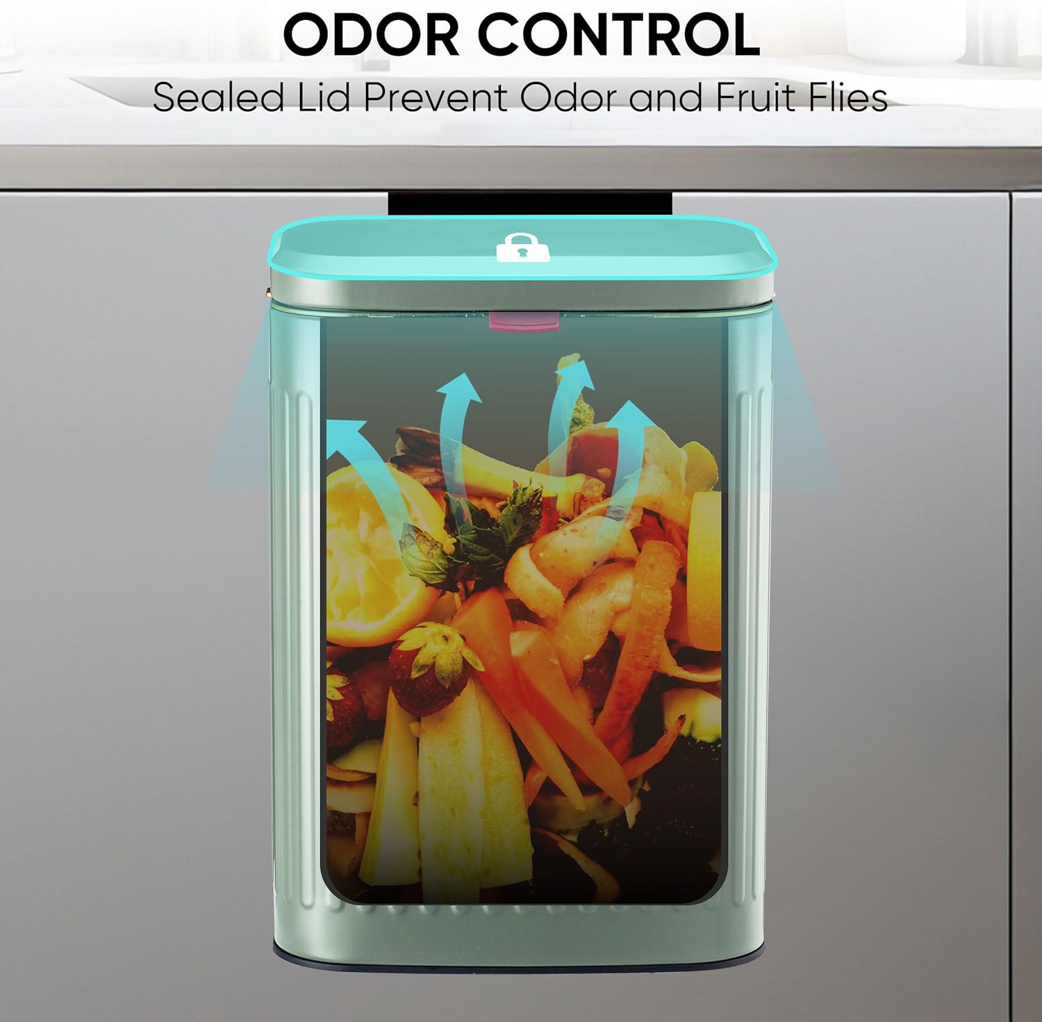 - [Waste Basket with Fully Sealed Base and Lid] The compost can's base is fully sealed, there is no trash with leak from the base.After covered the lid, the trash odor will not enter into the air.Keep the odor inside in the trash bin effectively.