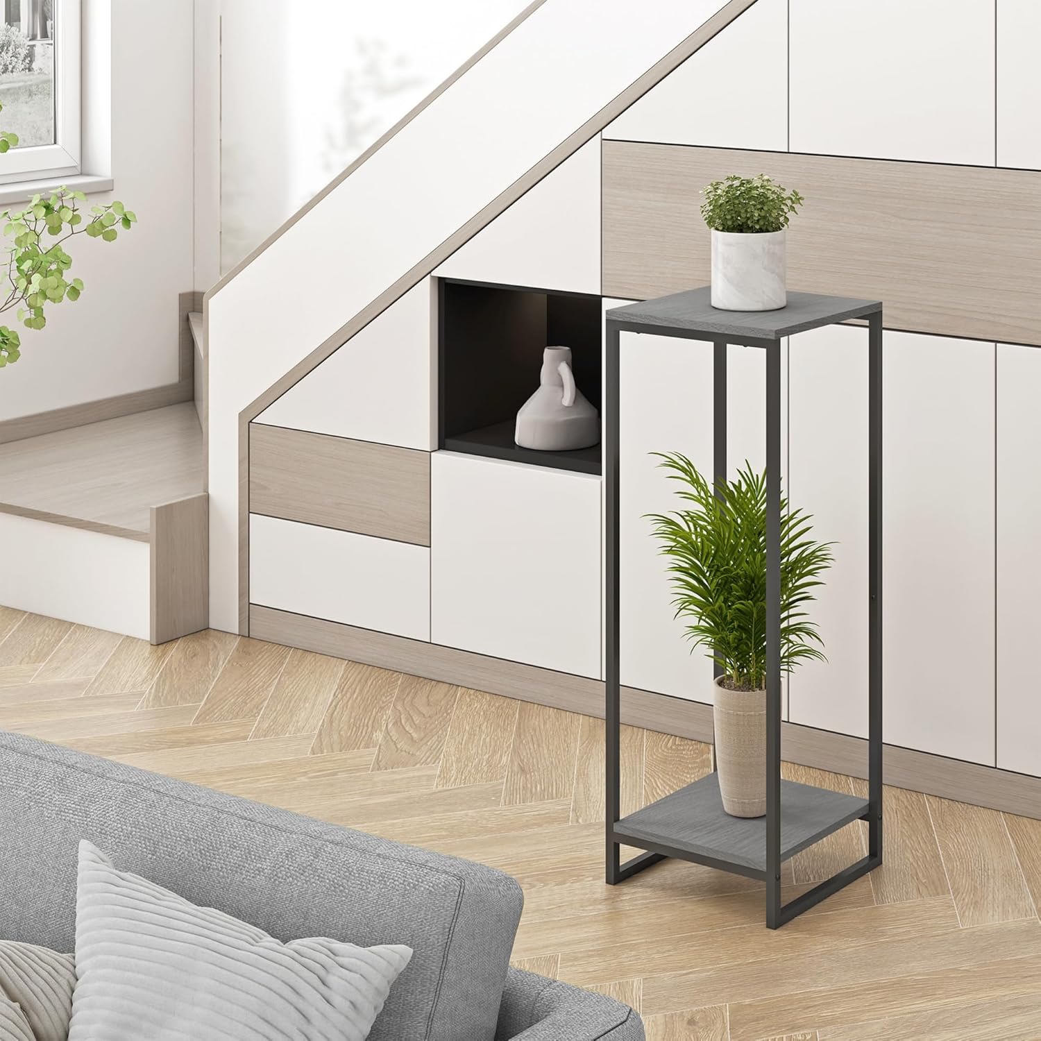 34" Tall Plant Stand Indoor, 2-Tier Modern Plant Shelf, Corner Flower Pot Holder Organizer for Living Room Balcony Patio Garden (Oak Grey)