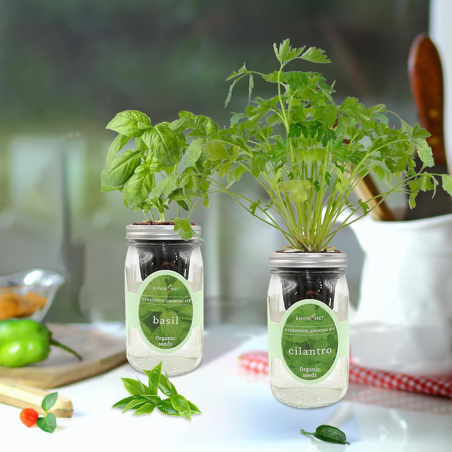 2-Pack Hydroponic Mason Jar Herb Garden Kit, Indoor Herb Garden Self-Watering Starter Kit (Basil,Cilantro)