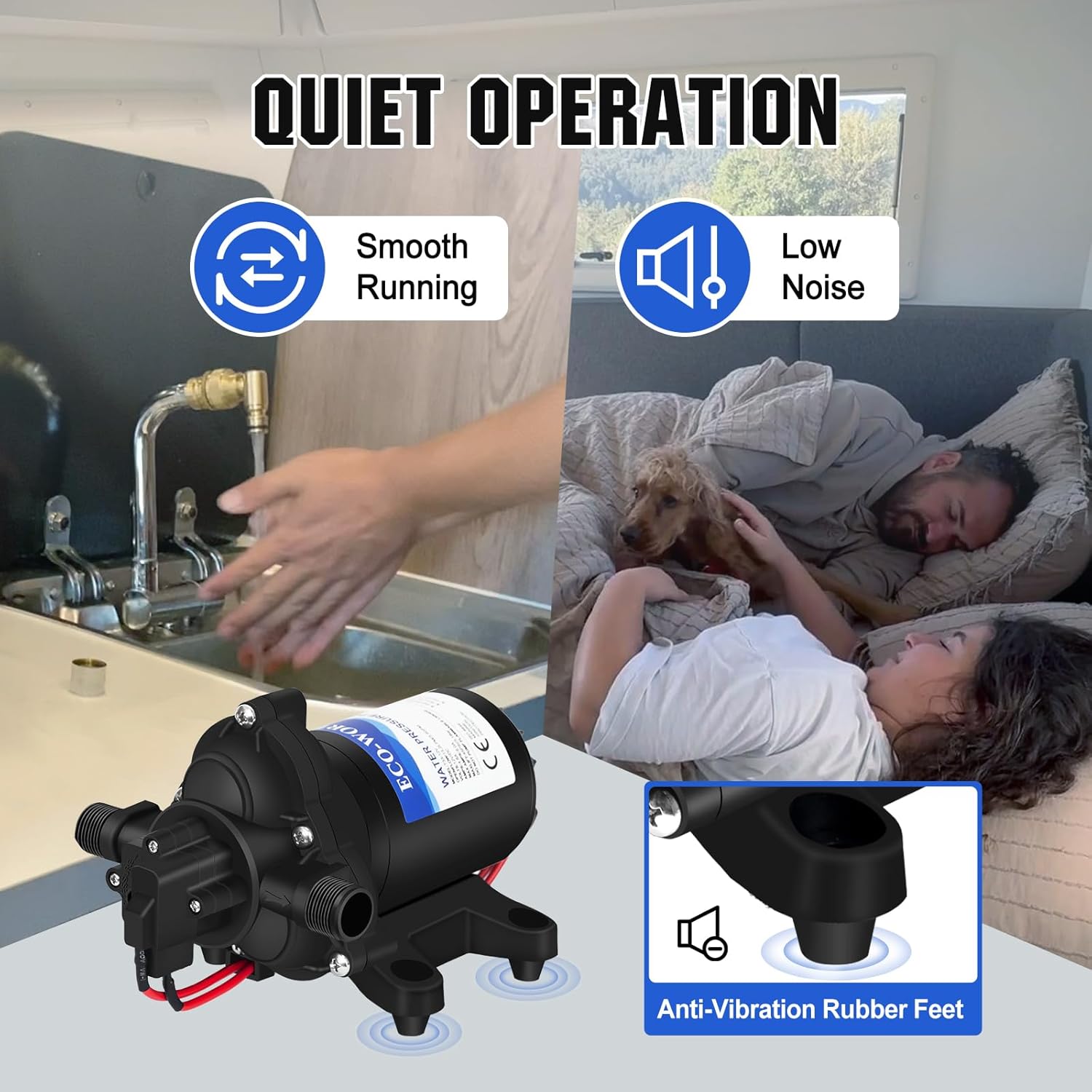 ECO-WORTHY RV Fresh Water Pump 12V DC 3.5GPM 45PSI with Pressure Switch, 12Volt Self Priming Water Pressure Diaphragm Pump On demand for RV Yacht Camper Sprayer Food Truck Black