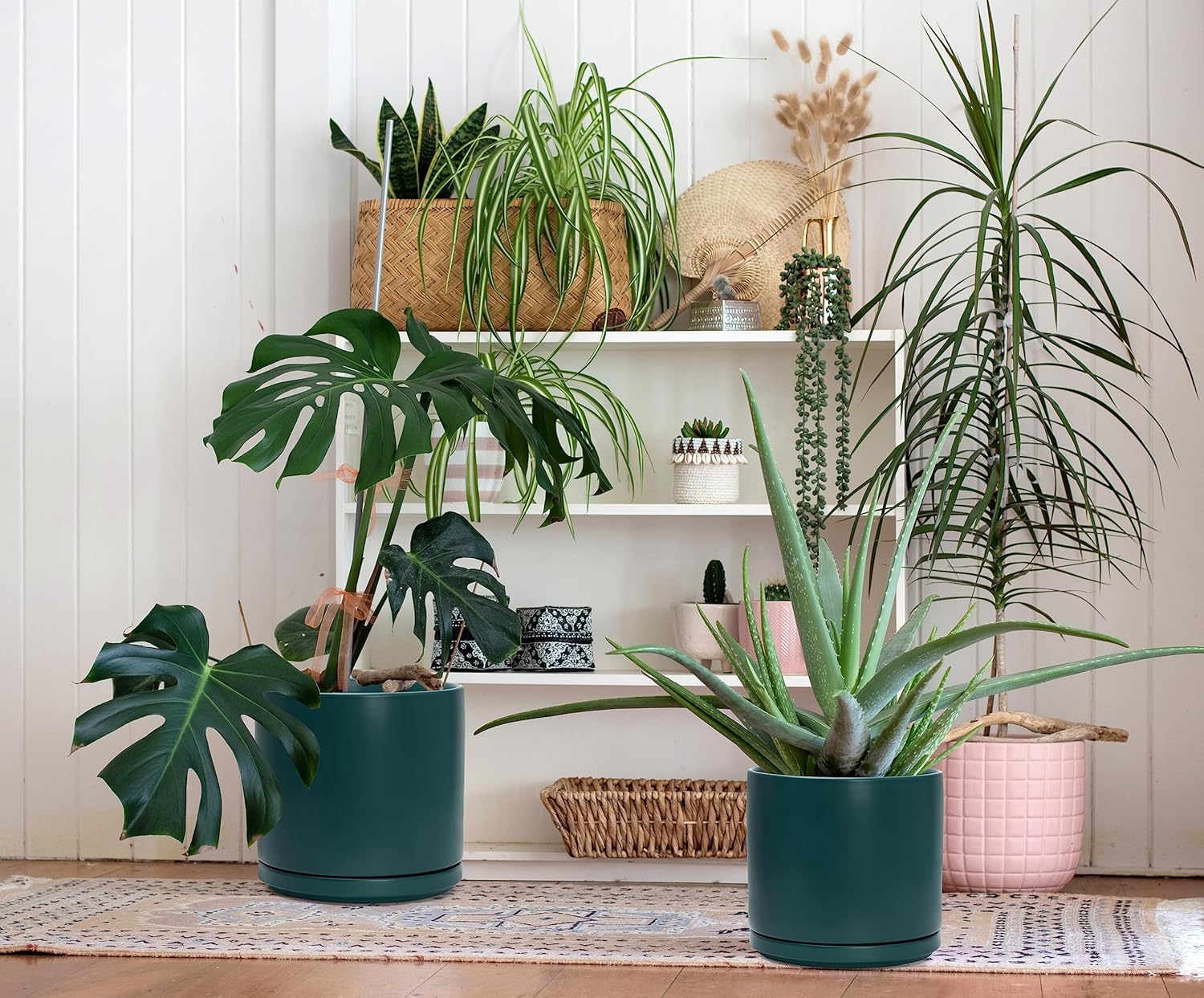 D'vine Dev 8 Inch & 10 Inch Ceramic Planter Pot for Plants with Drainage Hole and Saucer, Large Plant Pots Set, Teal, 94-G-L-9