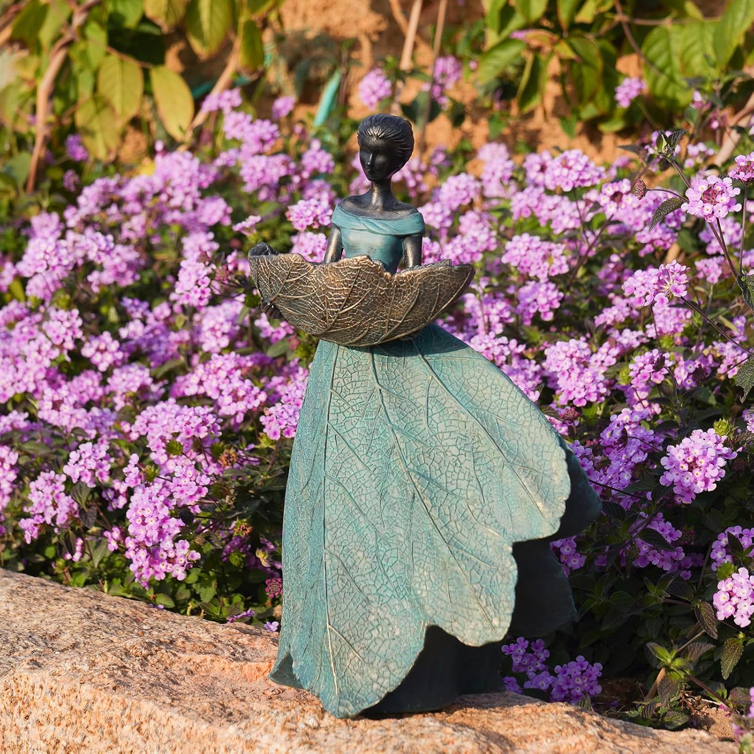 - 【HOME DÉCOR GIFTS FOR HER】Impress your Female friends or family members with this attractive leaf girl garden statue that brings fairy charm and liveness to your home and garden. Great gift choice for Birthdays, Mother’s Day and other holiday occasions.