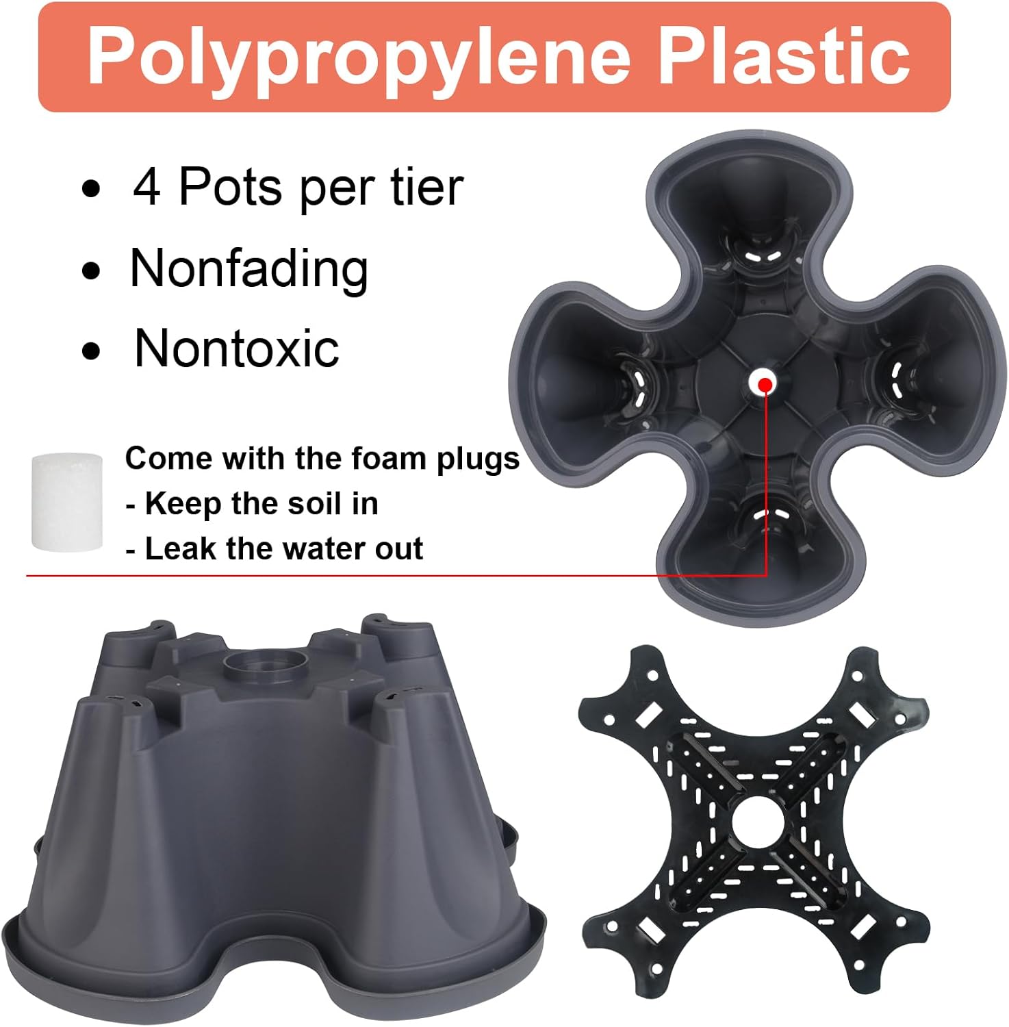 - SOIL HOLDING BOARD - Each tier has a board that holds soil while allowing water to drain down.
