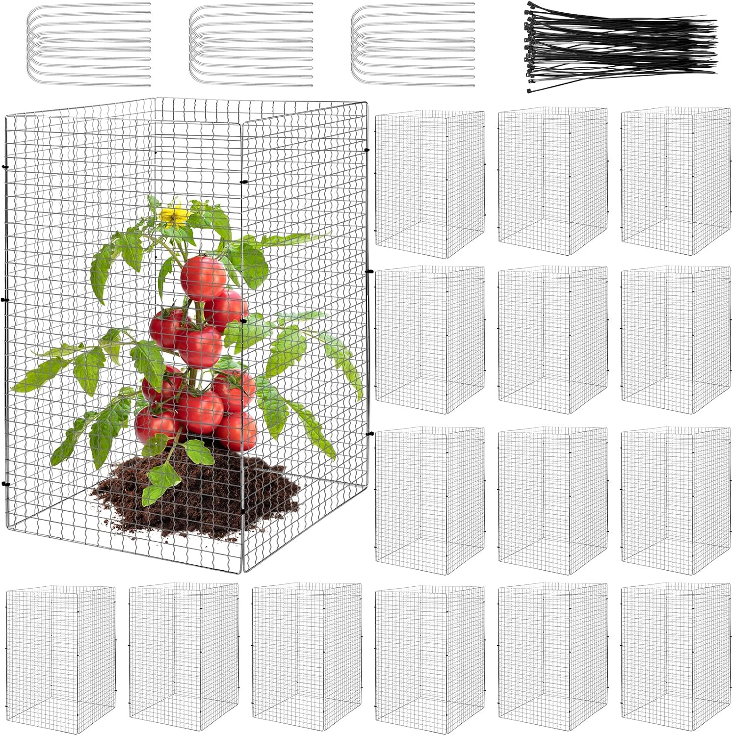 Geosar 60 Pcs/15 Packs Chicken Wire Plant Protectors 11.7 x 19.5 Inch Mesh Plant Protection Cage from Animals with U Shaped Garden Stakes and Nylon Tie for Outdoor Garden Flowers Vegetables