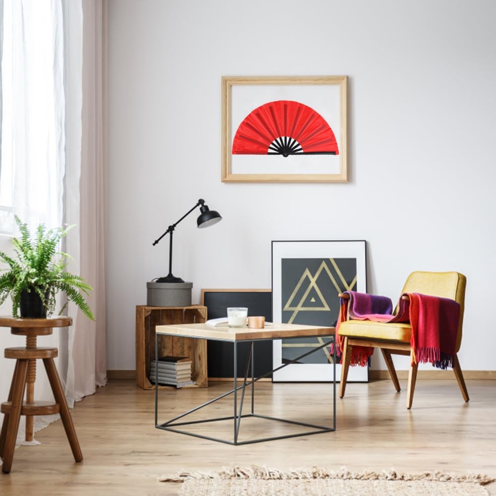 4 Pack Large Folding Hand Fan, Plastic Hand Held Folding Fans Chinese Kung Fu Hand Fan Decorative Folding Fans for Dance, Performance, Festival or Home Decorations(Red)