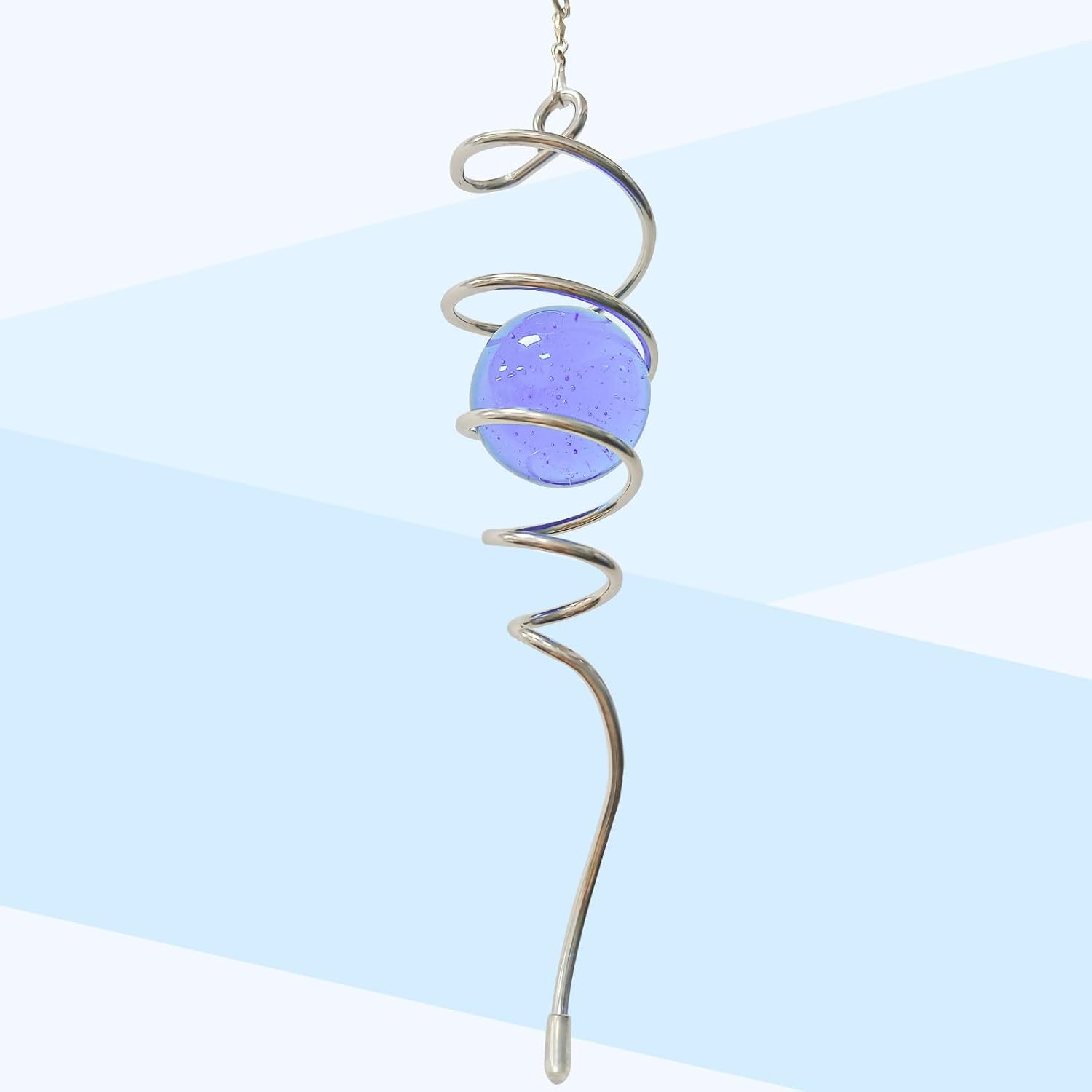 - 【EASY TO POSITION】:The Spiral can't spin by itself ,if you want to make it spin like the video ,need add 1pc motor (not include) ,or combine it with a wind spinner or any rotatable hanging ornament to help it rotate. Come with 1pc 2 inch colored glass orb(not paint), 1pc silver color spiral tail twister,and 1pc swivel hook accessory, ready to hang and enjoy.
