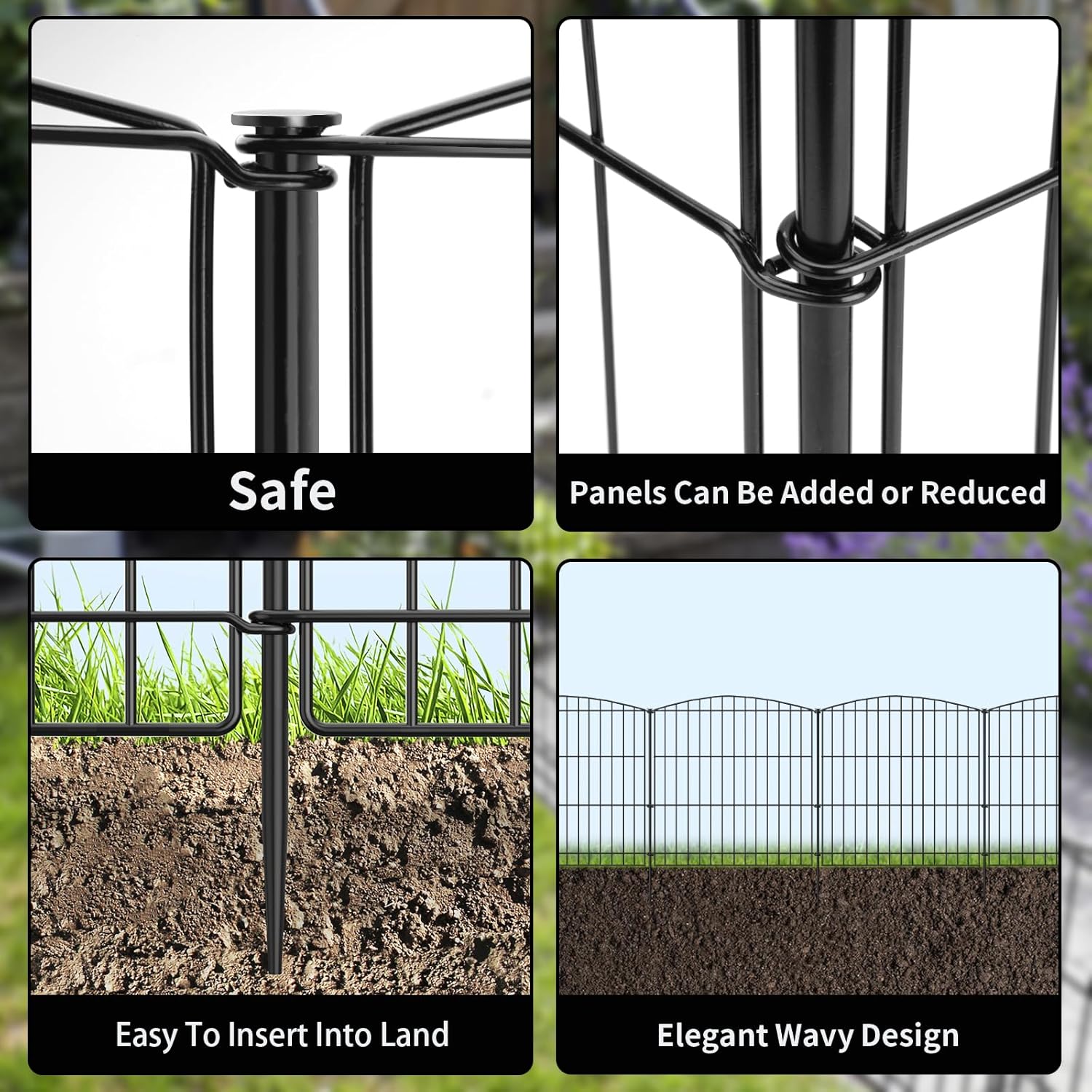 - MULTI-PURPOSE DECORATIVE FENCE:This decorative fence can be used as a garden fence or animal barrier fence and can be set up around plants, trees, patio landscaping, vegetables, as a plant protection fence, garden landscape fence, flower bed fence and more. Can also be used as a pet fence such as dogs or rabbits to prevent small animals from escaping or entering and ruining your garden. Can also be used decoratively on driveways, walkways, backyard decorations and garden borders