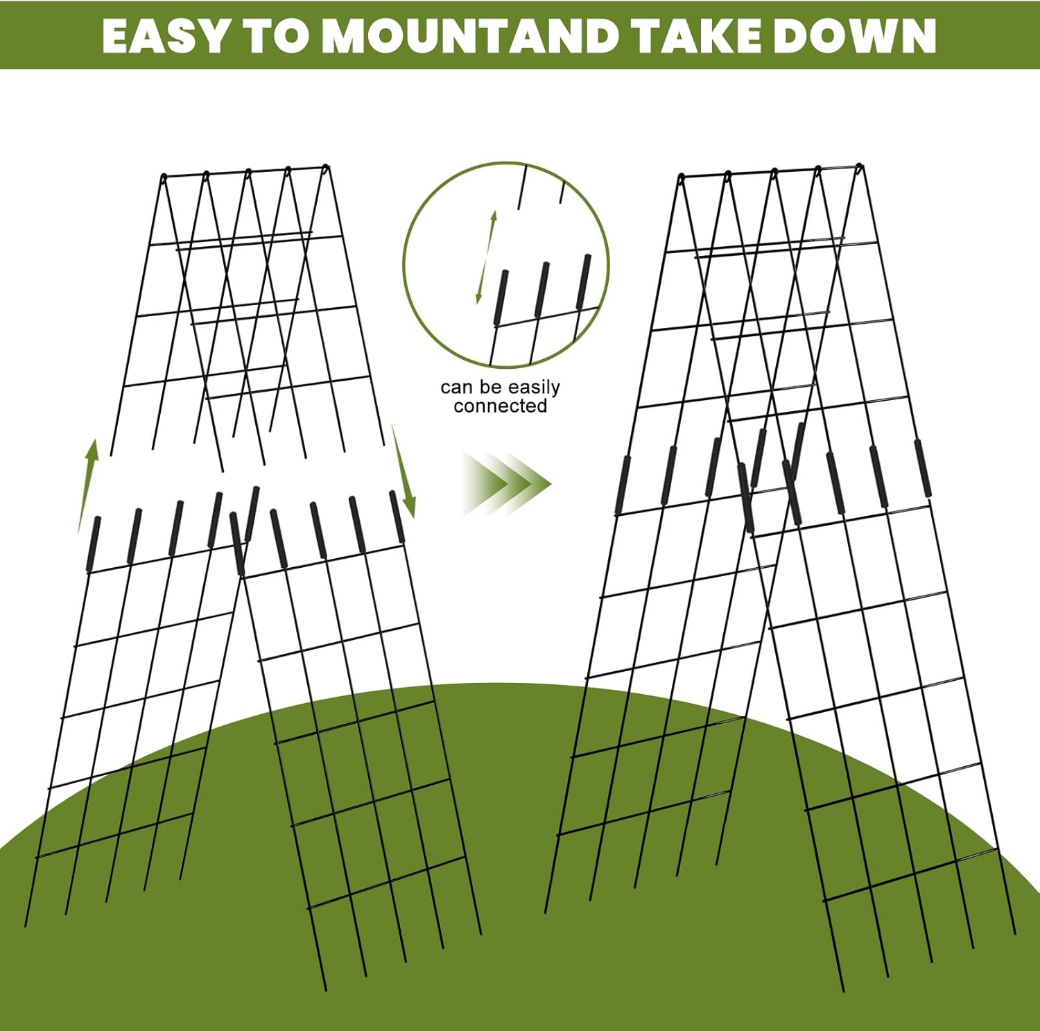 - 【STABLE DESIGN】 The trellis features A-frame and foldable designs, which allow plants to get sunshine evenly and helps them grow healthily. Plus, using this foldable trellis is easy to expand the extra space you want or convenient to store for next growing season. The bottom can be deeply inserted into the soil for more stability.