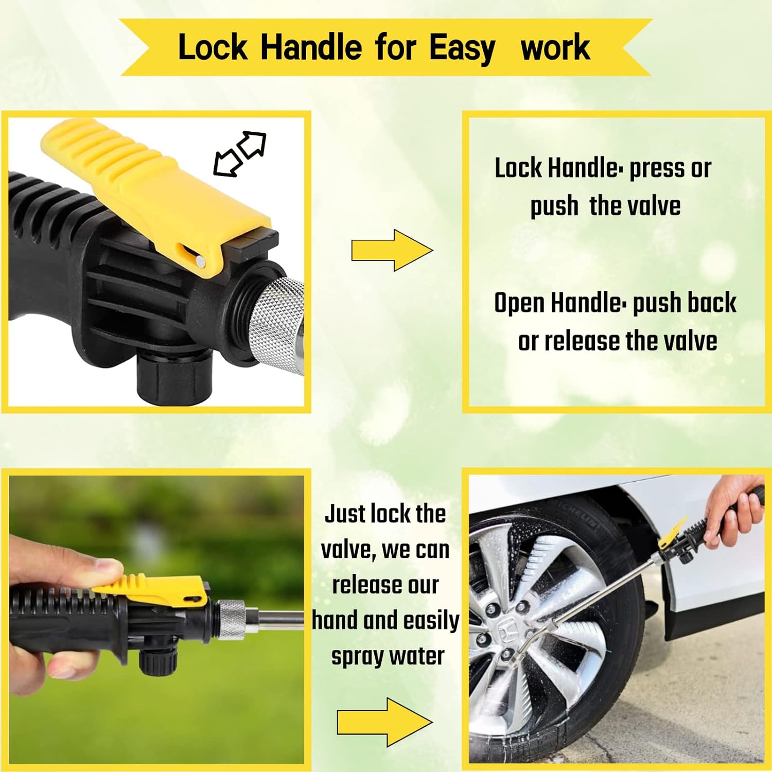 - Freely Adjustable: Stainless sprayer wand with an adjustable nozzle; Turning nozzle to get a strong stream or a fine spray; Handle has a lockable valve so you can lock it to work continuously and relax your hands; Besides, you can Adjust this spray wand to a length you want