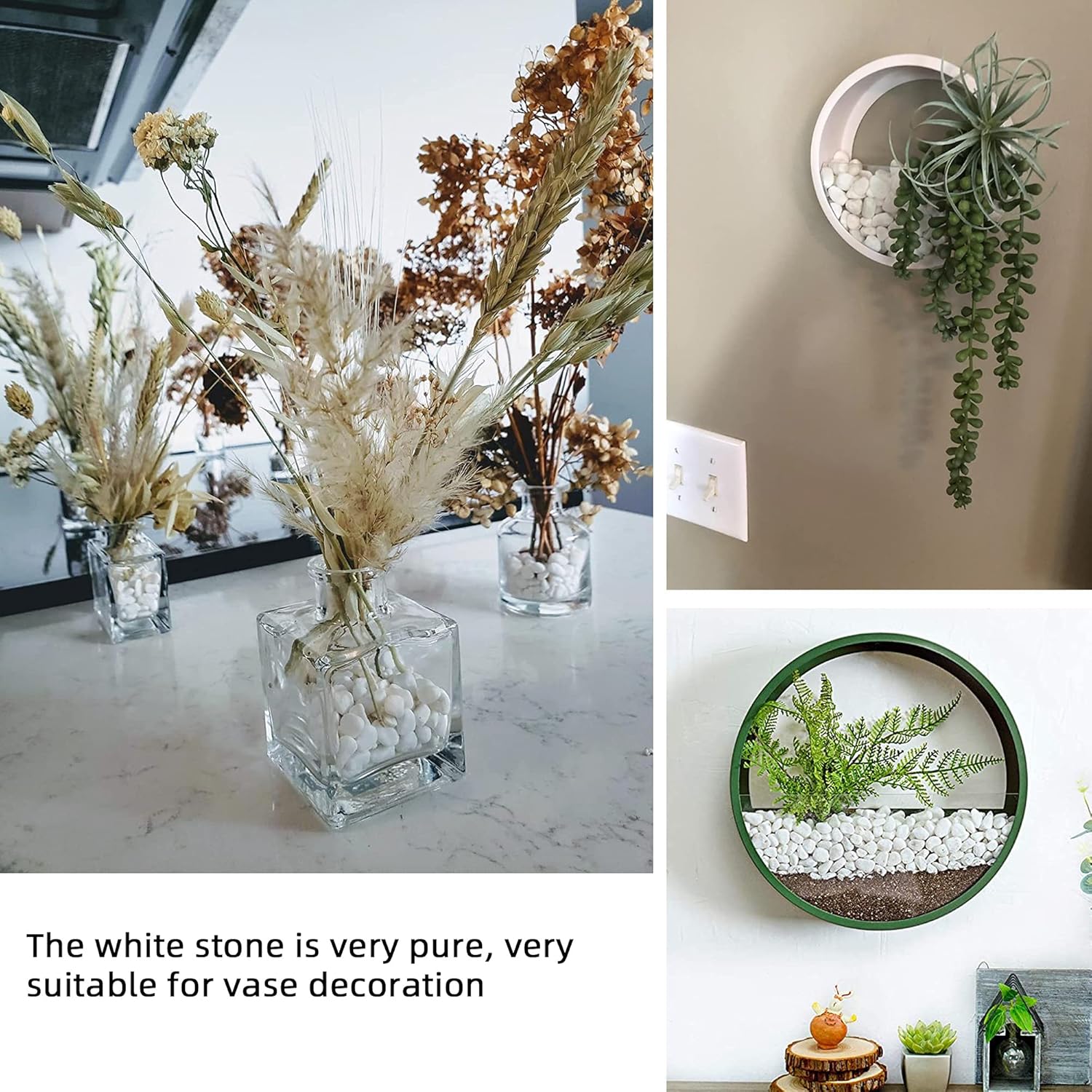 - 🌷【WIDE USES】Common applications include succulent containers, potted plants,vases,cactus,bonsai,landscapeand terrariums.It is perfect for home decor and a creative interior and exterior design. The possibilities are endless with these floral arranging white gravel rocks!