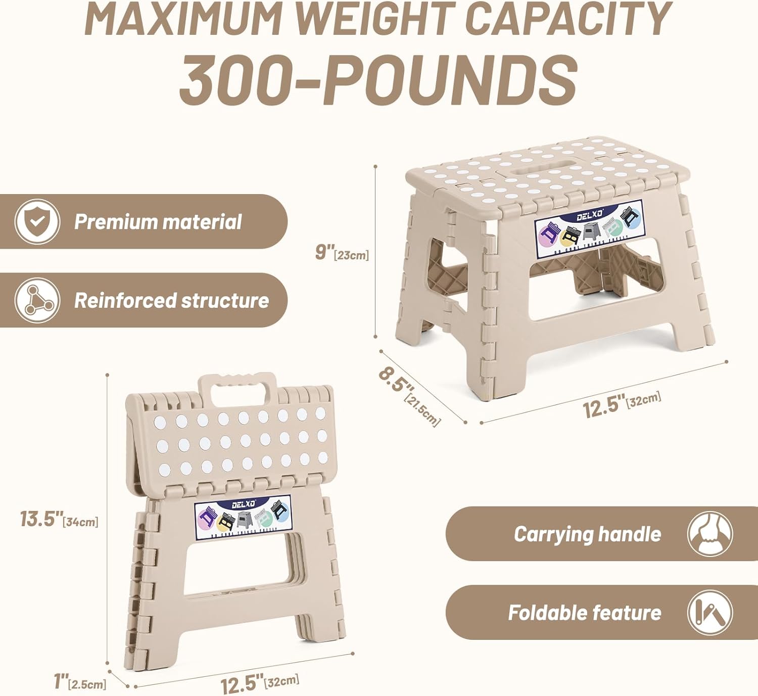 Delxo Folding Step Stool,9 Inch Lightweight Plastic Stepstool,Portable Collapsible Foldable Step Stool Non Slip Folding Stools for Kitchen Bathroom Bedroom in Khaki,1 Pack