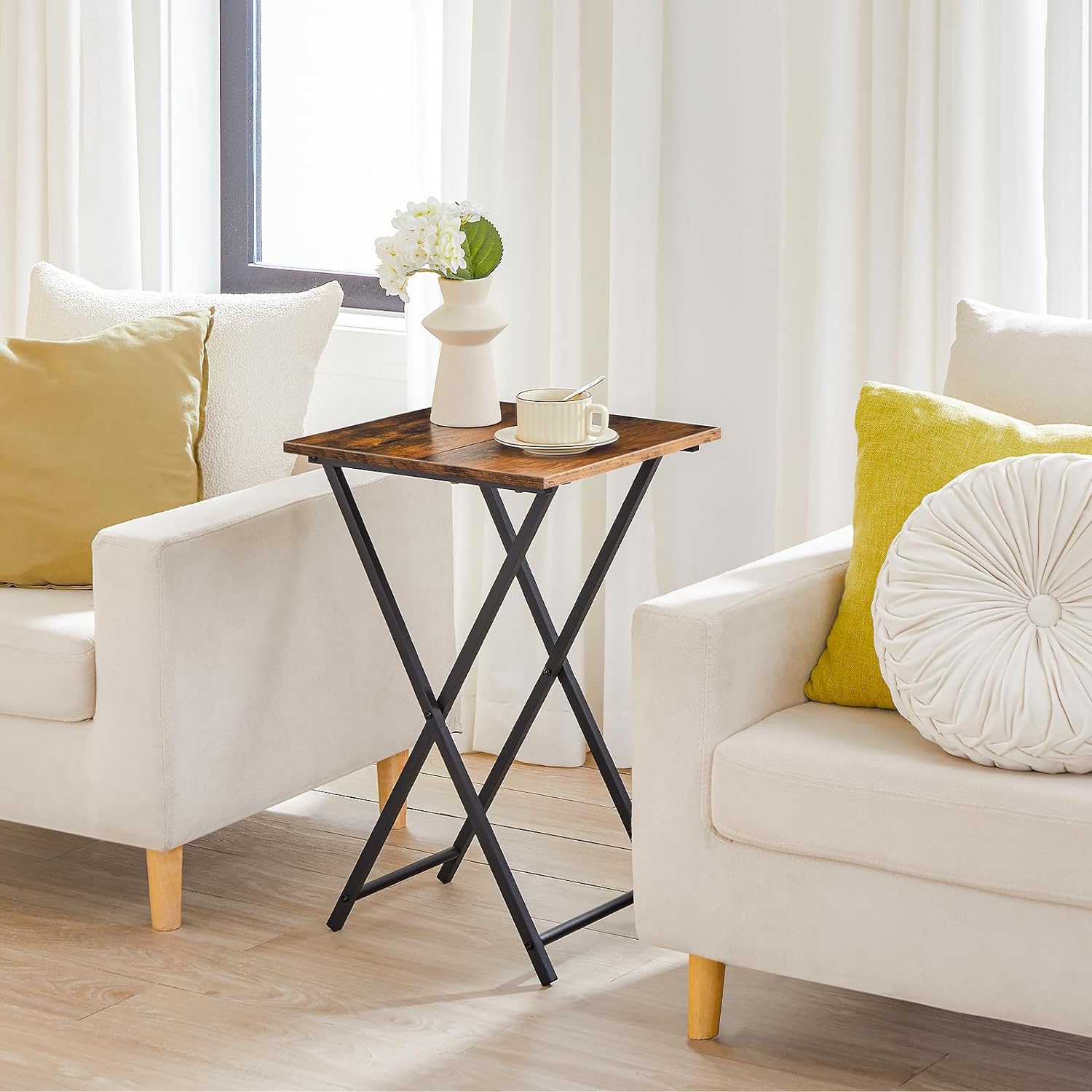 - Multiple Advantages: Don't want the side table taking up too much space when not in use? This TV tray can easily be folded and stored under the sofa, freeing up more common space.When folded, the folding table is portable to be carried anywhere needed