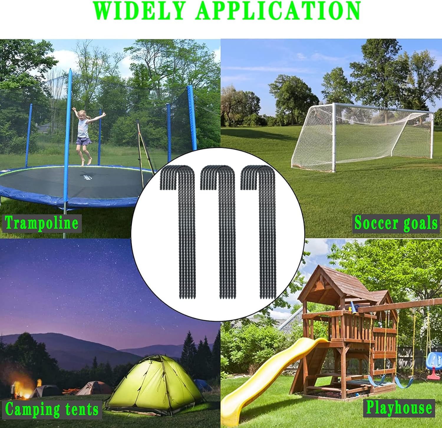 - 【STRONGER ANCHORS】These 16-inch-long trampoline stakes with ridges can prevent the trampoline from overturning or moving during using.