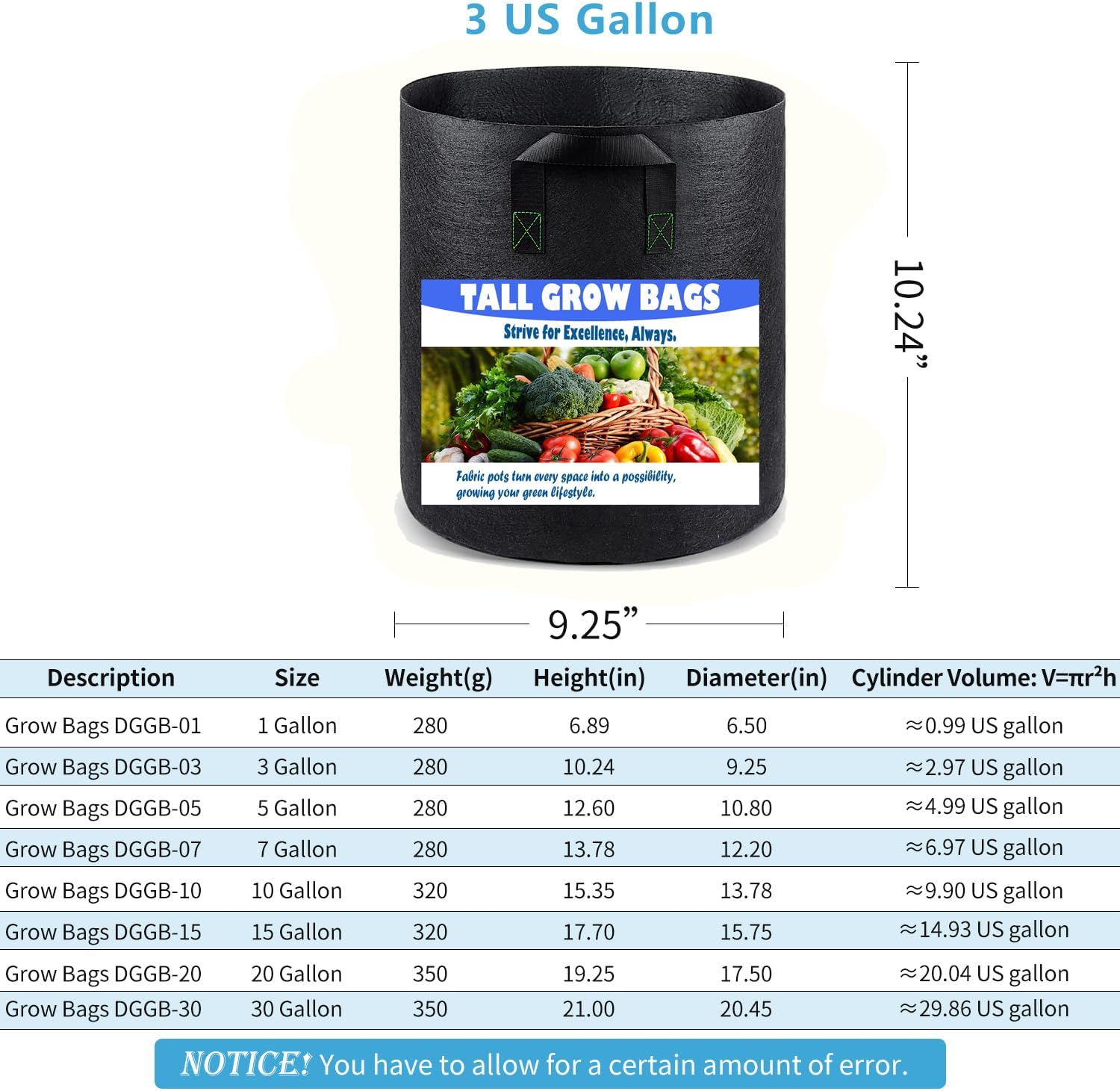 3 Gallon 5 Pack Grow Bags, Heavy Duty Nonwoven Aeration Fabric Plant Grow Pots for Vegetables