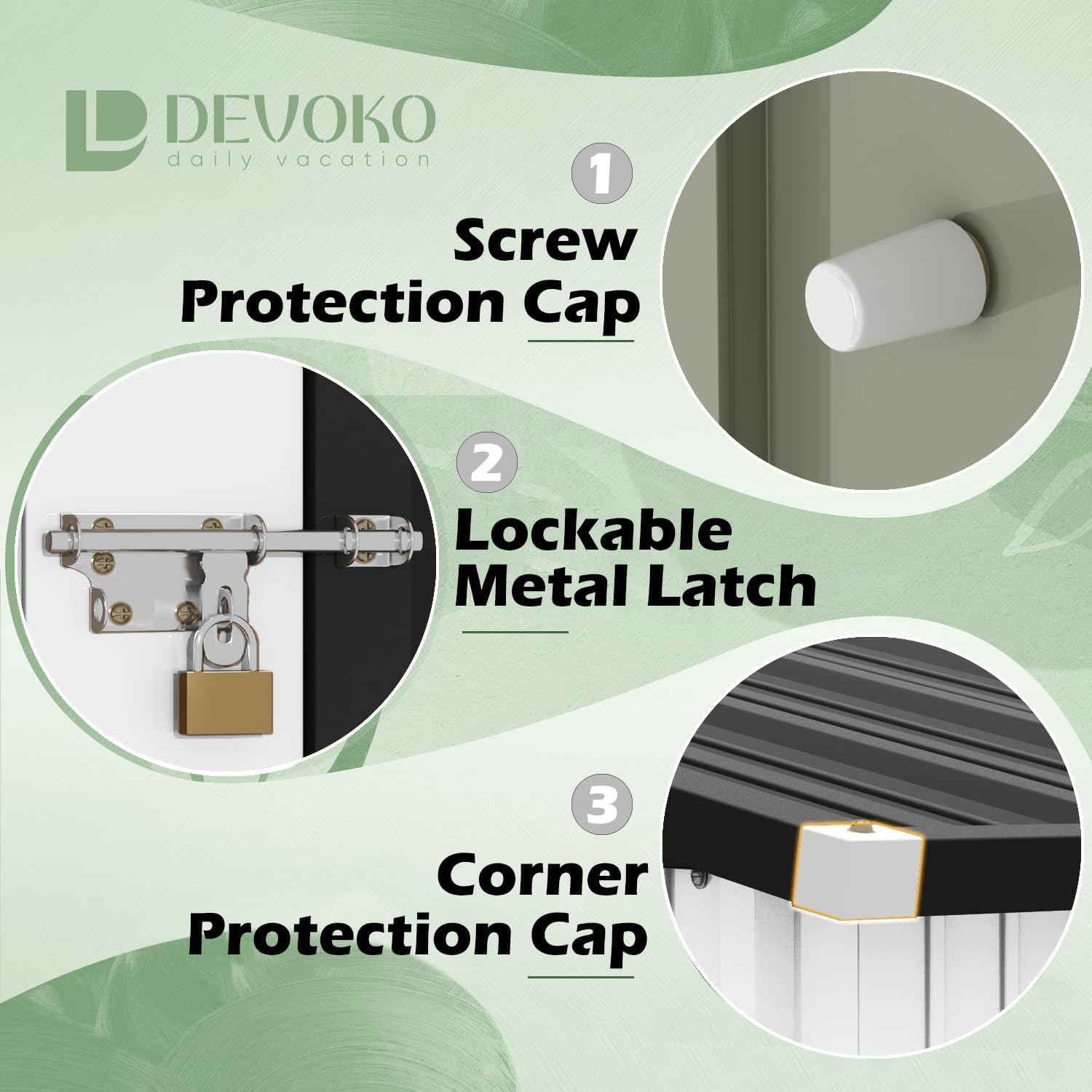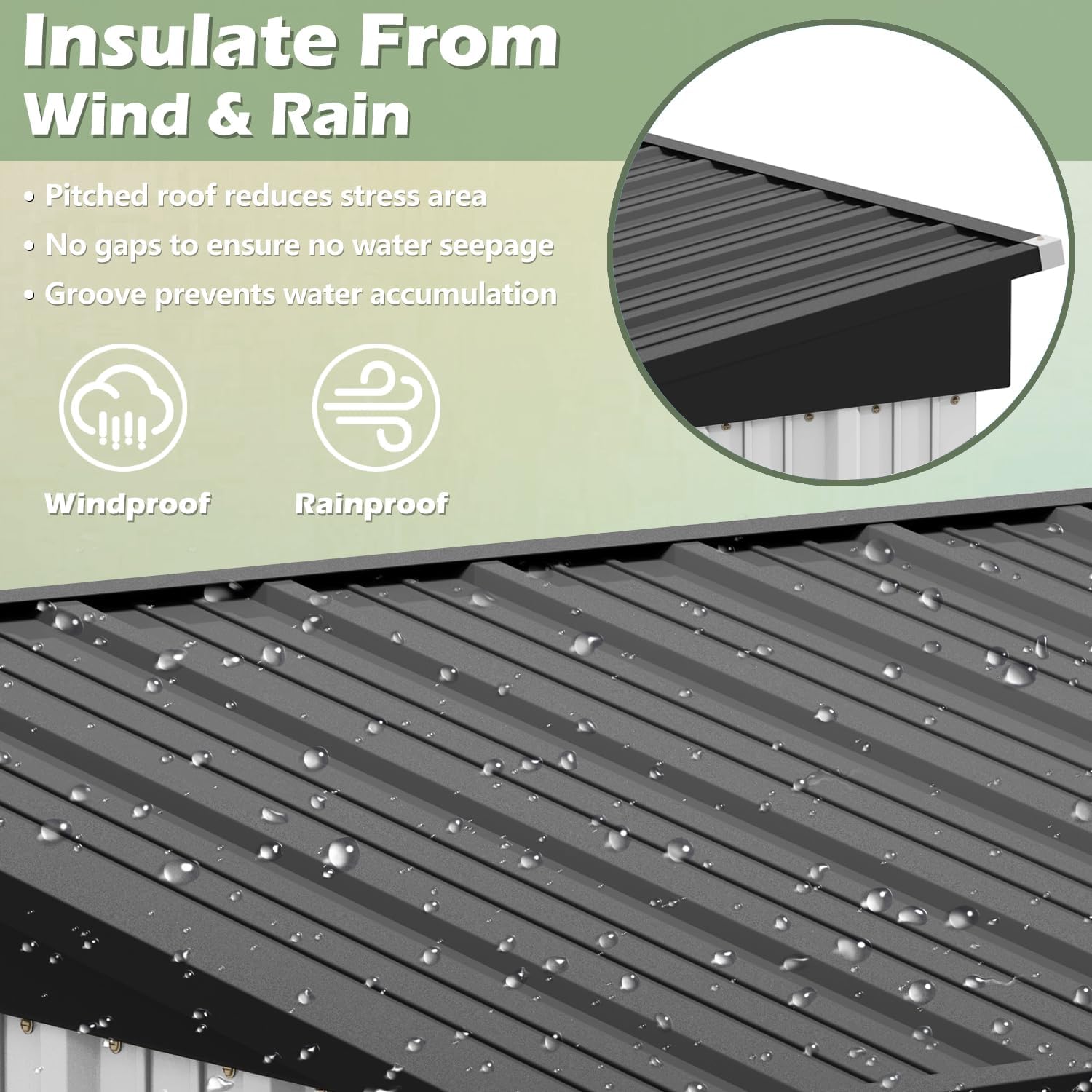 - [Security and Durability] The whole house is a steel frame structure, the metal garden storage shed adopts electro-galvanized steel process and paint treatment, which is suitable for various climates, without worrying about the metal rusting, the all-metal storage shed will not be deformed by the sun, and has excellent moisture-proof performance.