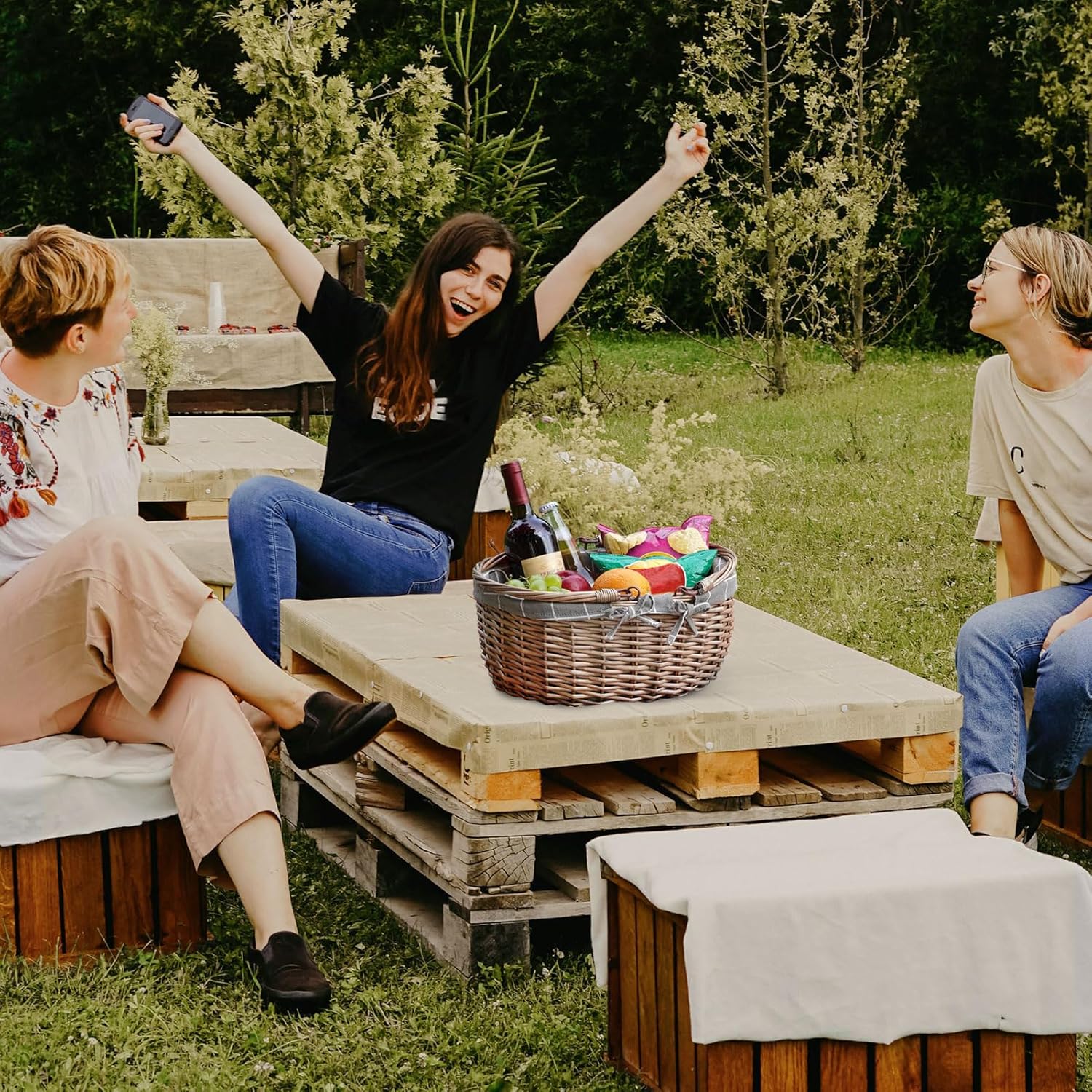 - Great Gift:This gorgeous willow picnic baskets with handle, makes a great present for any time of the year.Perfect decoration for house,condo, and keep in the trunk of your car.
