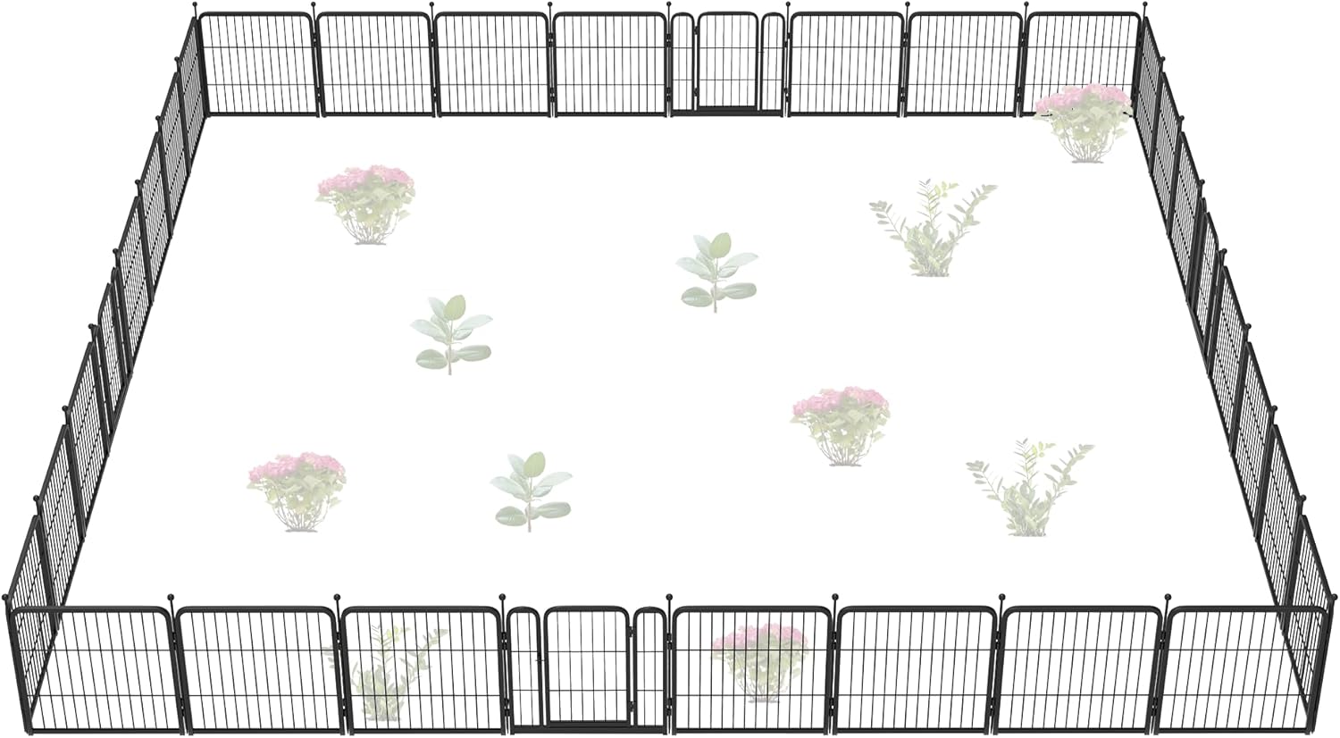 FXW Garden Fence Outdoor for The Yard – 24in(H) x 60.9ft(L) Heavy Duty Metal Animal Barrier for Dog and Rabbit, Decorative Dog Fence, 32 Panels, Black