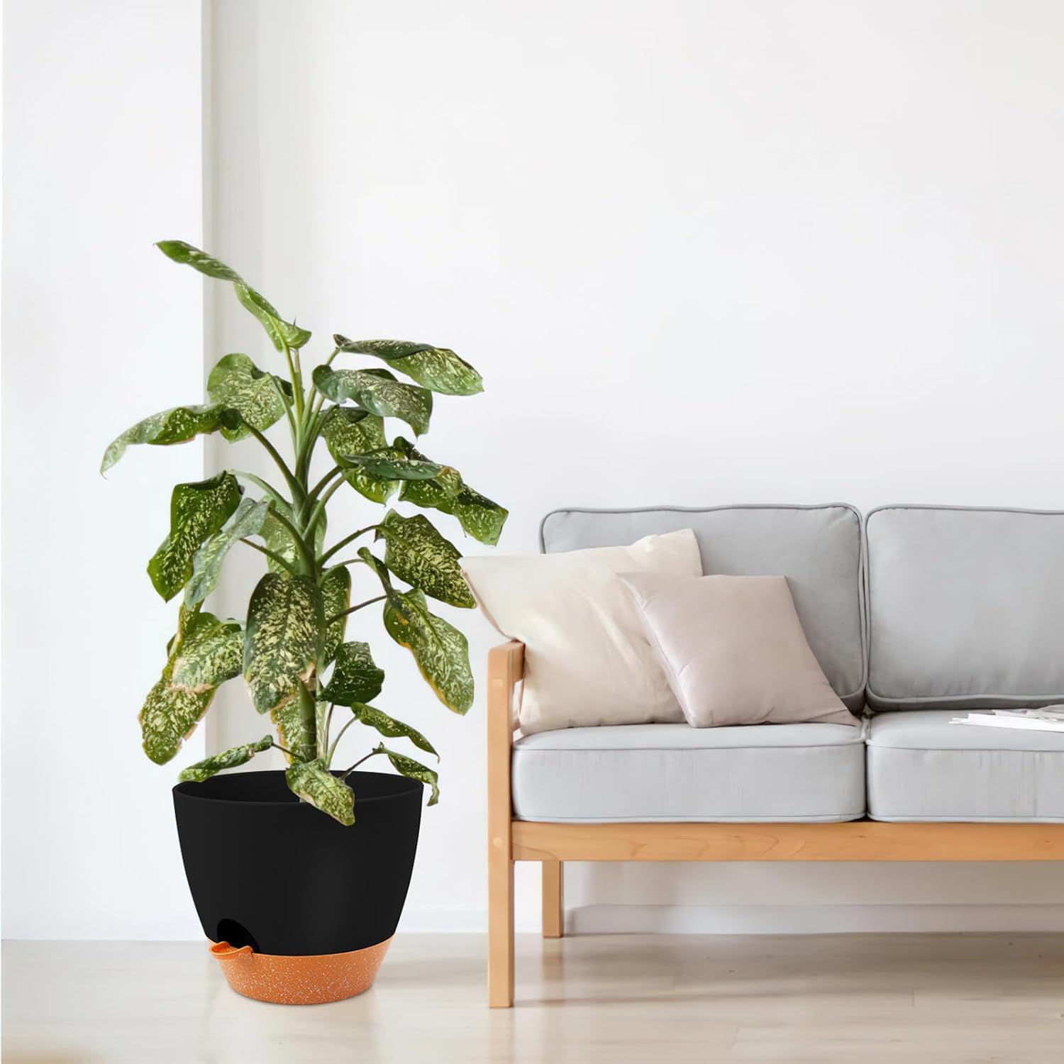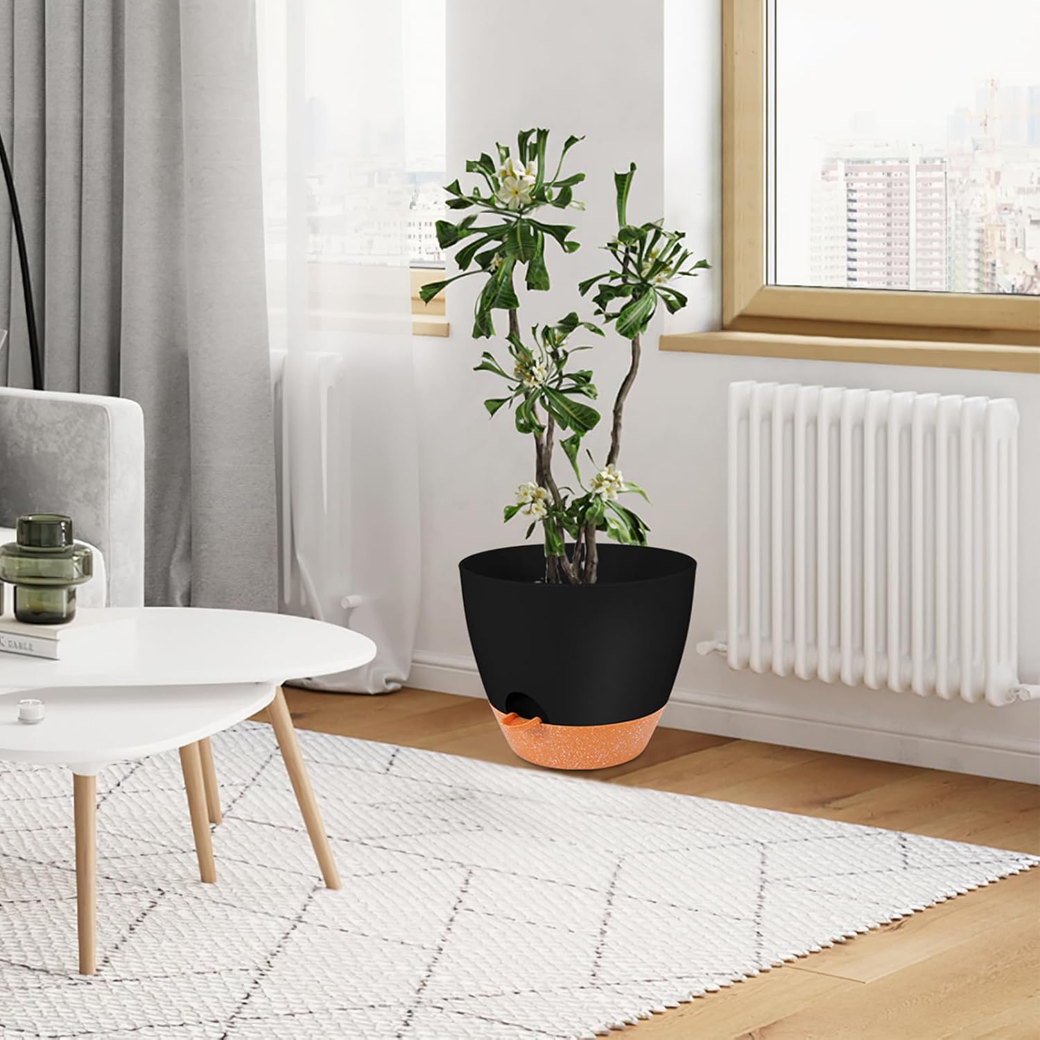 GARDIFE 12 inch planters, Plant Pots,Self Watering Pots, Large Plastic Flower pots with Deep Reservior and High Drainage Holes for Indoor Outdoor Plants and Flowers, Black