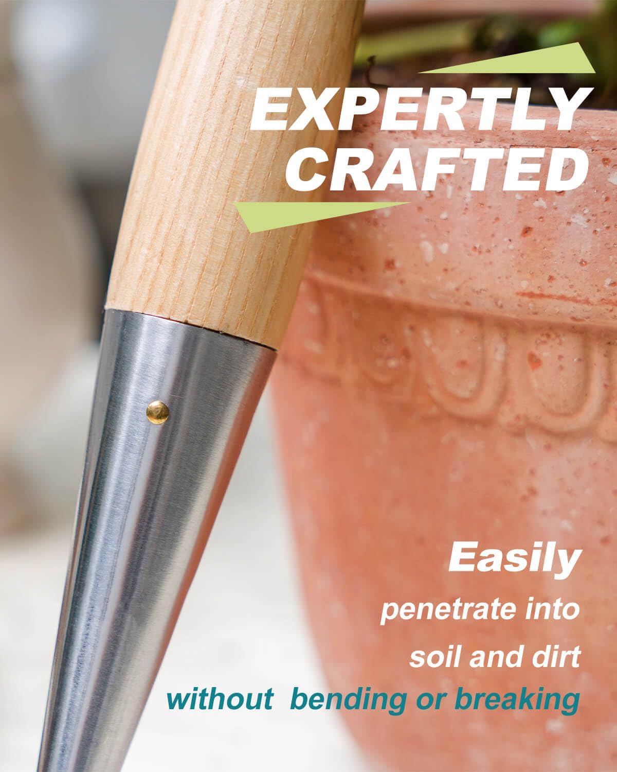 - UNRIVALED QUALITY - This hand dibber is hand-forged from stainless steel and fitted with ash hardwood handle for long lasting sharpness and durability. Short, compact, it can be easily stored in any tool bag, shed or garage.