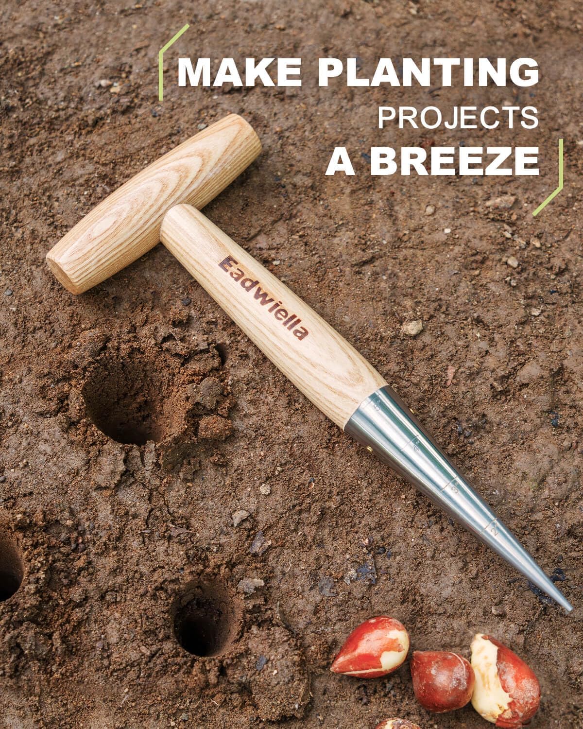 - READY FOR THE PLANTING SEASON - Eadwiella Dibber were designed to make planting bulbs, seeds, and small herbaceous plants easy, by creating the perfect diameter hole to the correct depth. Before using the dibber in your garden make sure the soil is well tilled as it will make using your garden dibber easier. Simply press the dibber into the soil while twisting it back and forth until the dibber is at the desired depth. Now youβre ready to plant your bulb or seed!