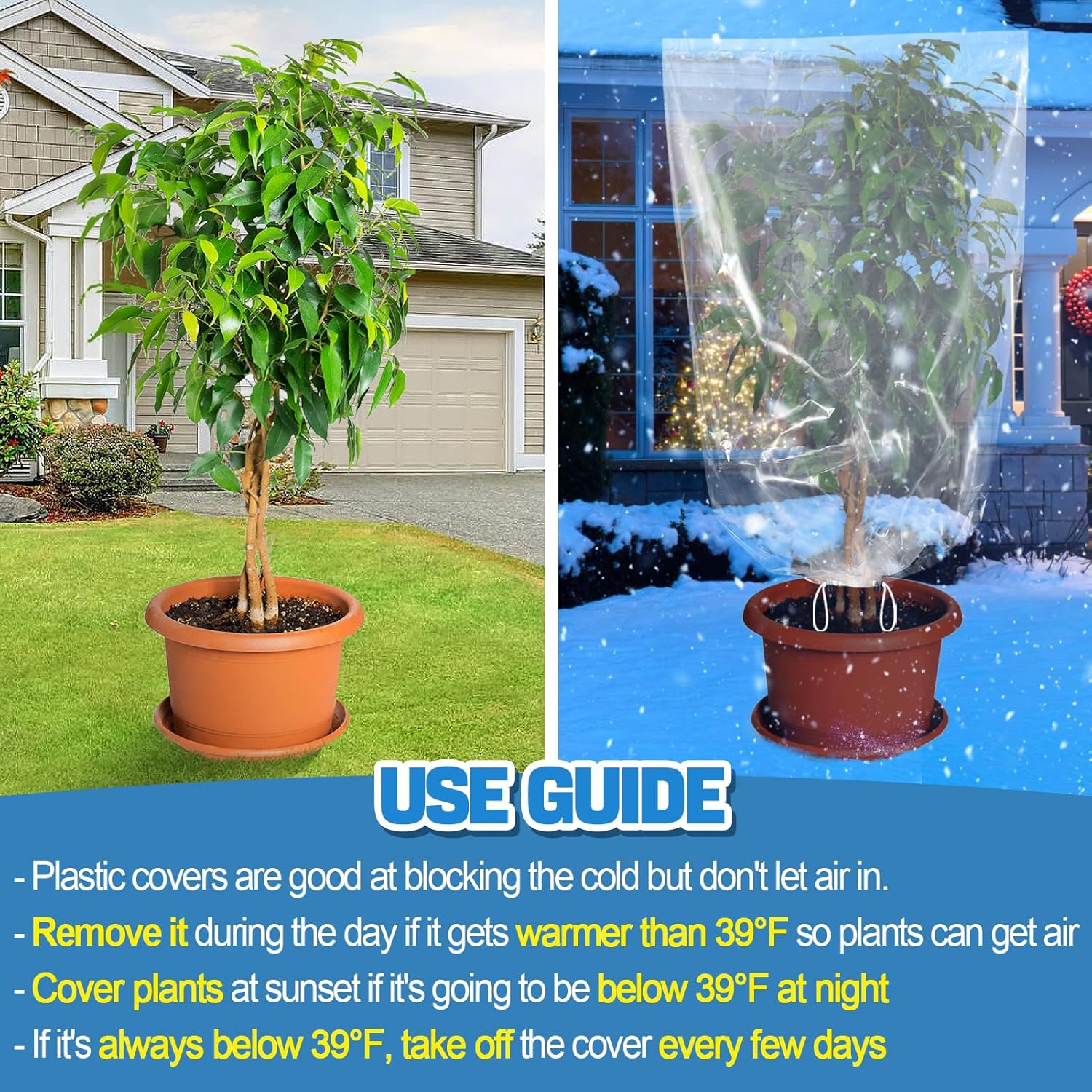 - [Extra Large] Each plastic plant cover measures 70.8" x 82.7" and is suitable for various large plants outdoors, such as large shrubs, mango trees, lemons trees, palm trees, and other fruit trees. 2 pieces come in a set, which can meet the needs of large plants.