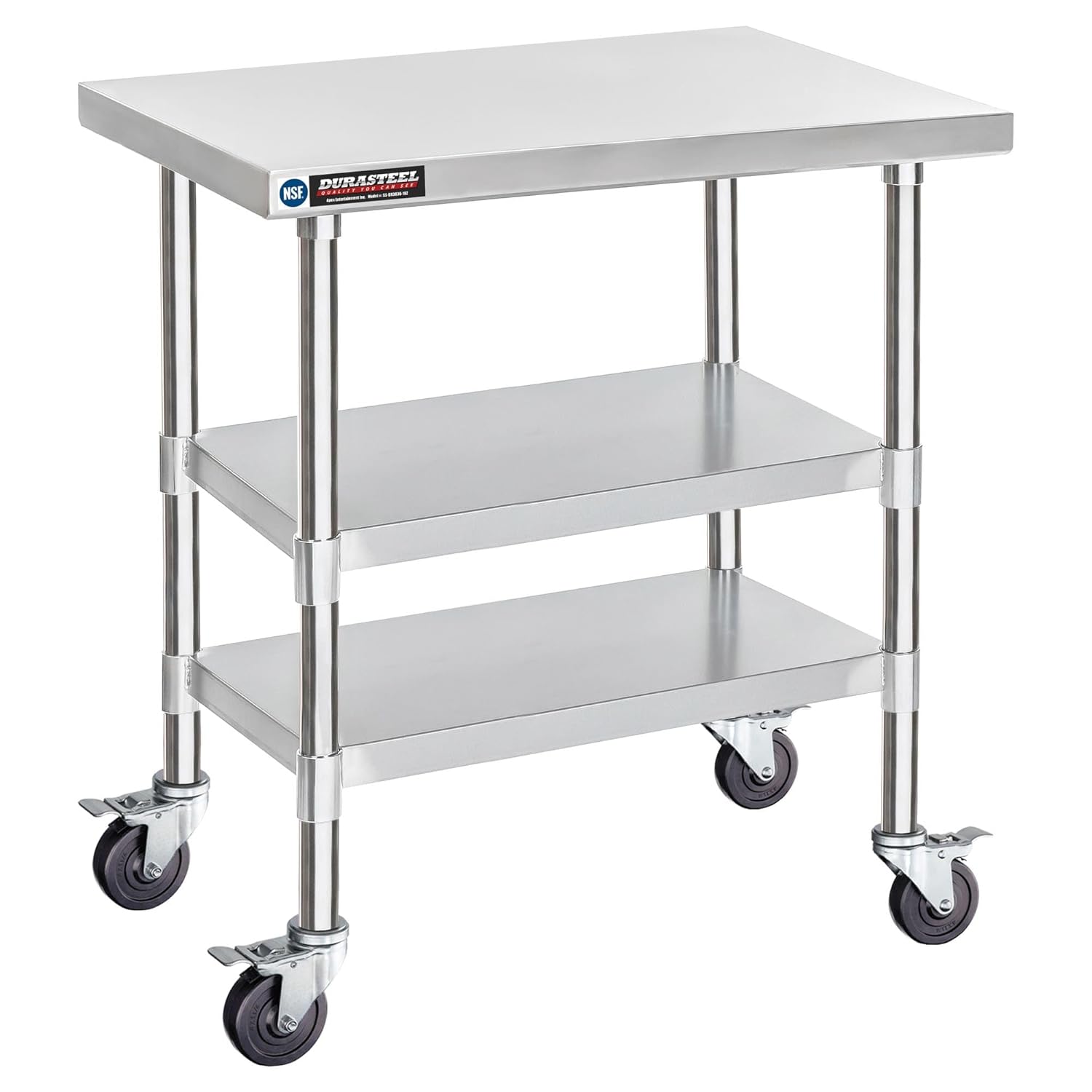 DuraSteel Stainless Steel Work Table 30" x 36" x 34" Height w/ 4 Caster Wheels - Food Prep Commercial Grade Worktable - NSF Certified - Good for Restaurant, Business, Warehouse, Home, Kitchen, Garage