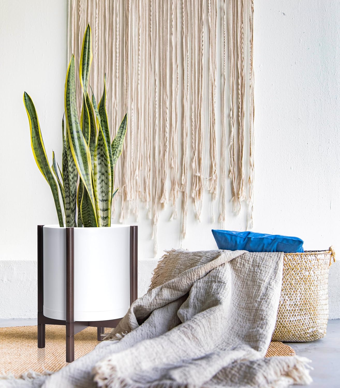 - Color : Matte White Pot + Walnut Color Stand