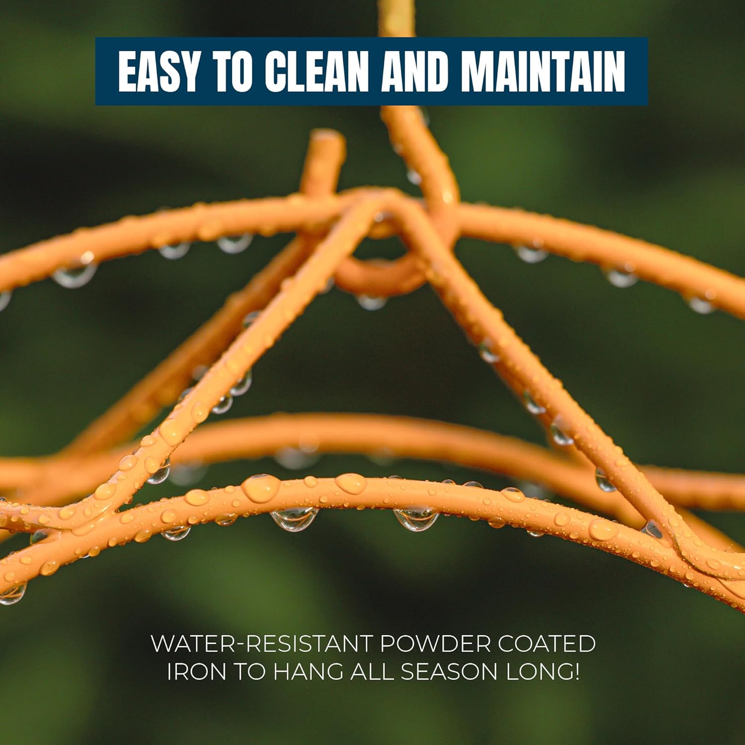 - ā A BRIGHT ORANGE COLOR THAT DOESN'T FADE: Our oriole feeder is powder-coated in a vivid orange color, the most favorite shade of this particular bird species. This helps the durable UV-resistant steel frame attract every oriole in sight while resisting fading over time. It is built to withstand the elements and keep your neighborhood orioles coming back for more.