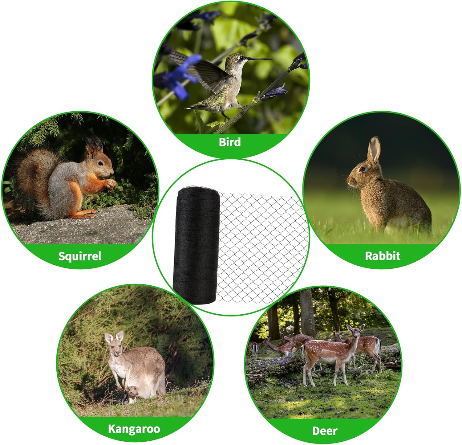 - Notice: The bird netting roll can be cut to any size you need for your garden, orchard, farmland or poultry fencing. The product size refers to the dimensions when the bird netting is evenly stretched. Since the mesh is diamond-shaped, overstretching one side may cause the holes to become irregular, affecting the width and length. which is not a sizing issue but rather a characteristic of the product. Please adjust according to your needs.