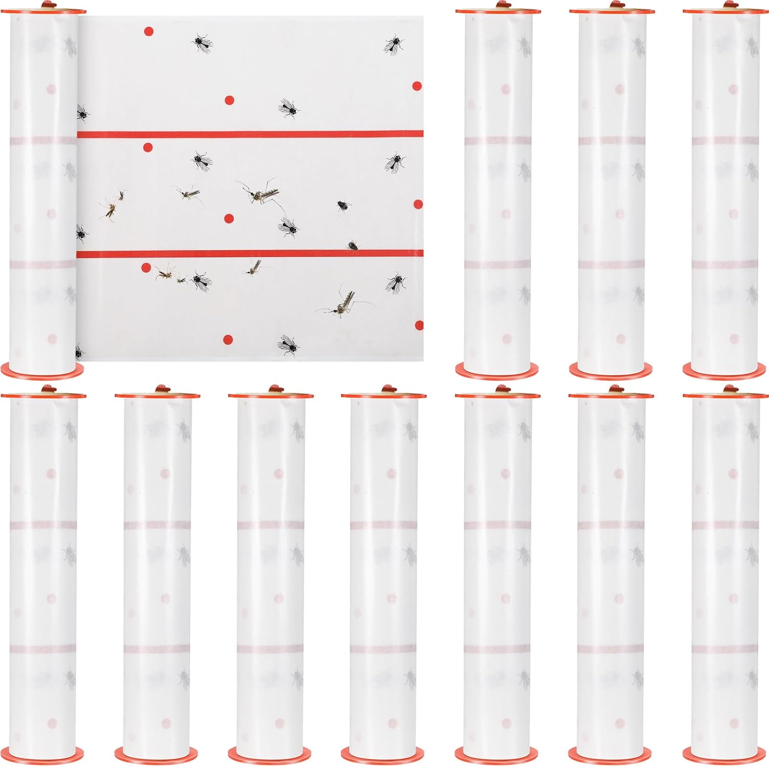 - Economical Fly Strips Roll Package: you will get 10 rolls hanging fly tapes, which size are 30 feet long, 10 inch wide; Our one sided flying insect trap roll contains 3, 600 square inches of quality fly catching surface, keep your family protected and safe