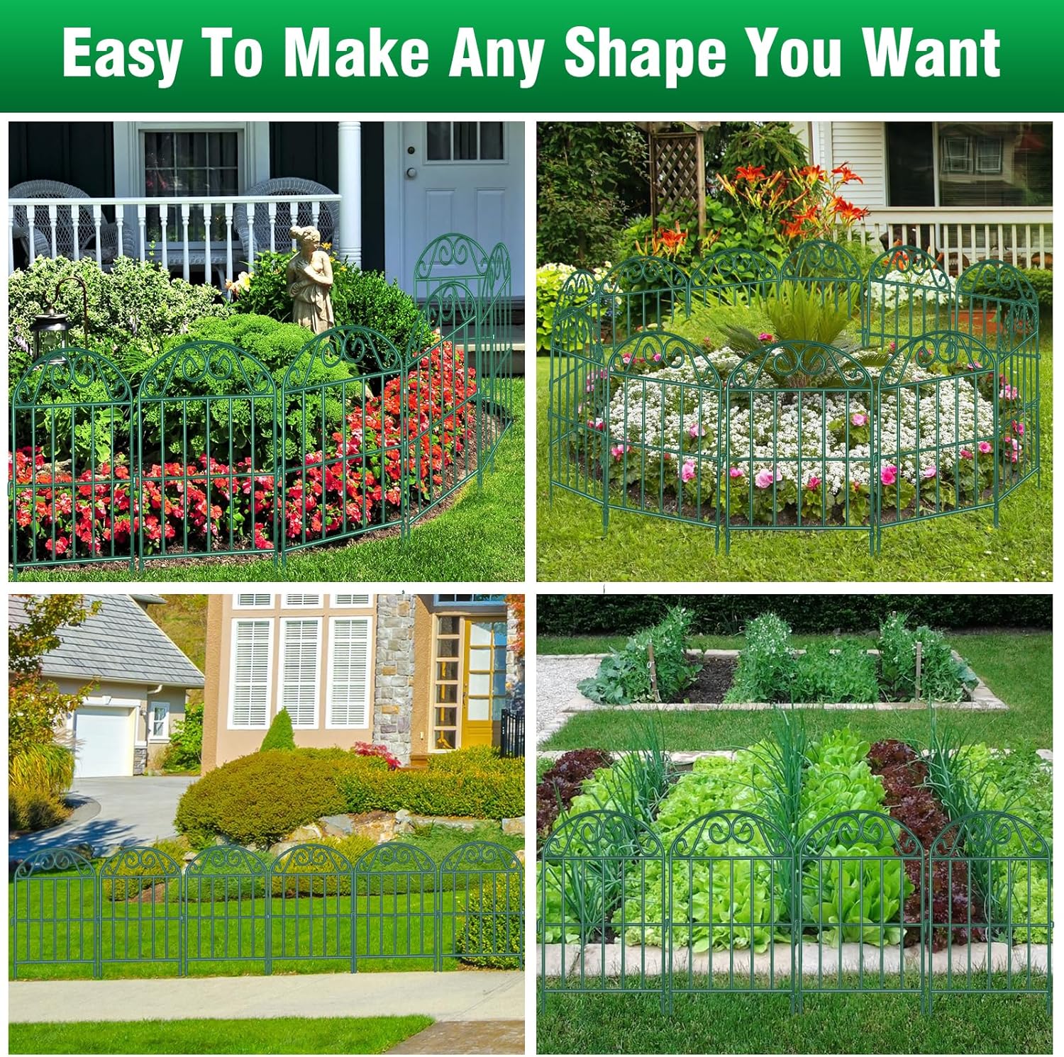 - Easy To Install and Move: Assembled by Unfolding the Spikes into the Soil. These Metal Panels are Connected by Hooks. Can be Assembled into Different Shapes You Need, It Can also be Easily Disassembled, Allowing You to Easily Create a Beautiful Garden Fence without the Tedious Installation Process