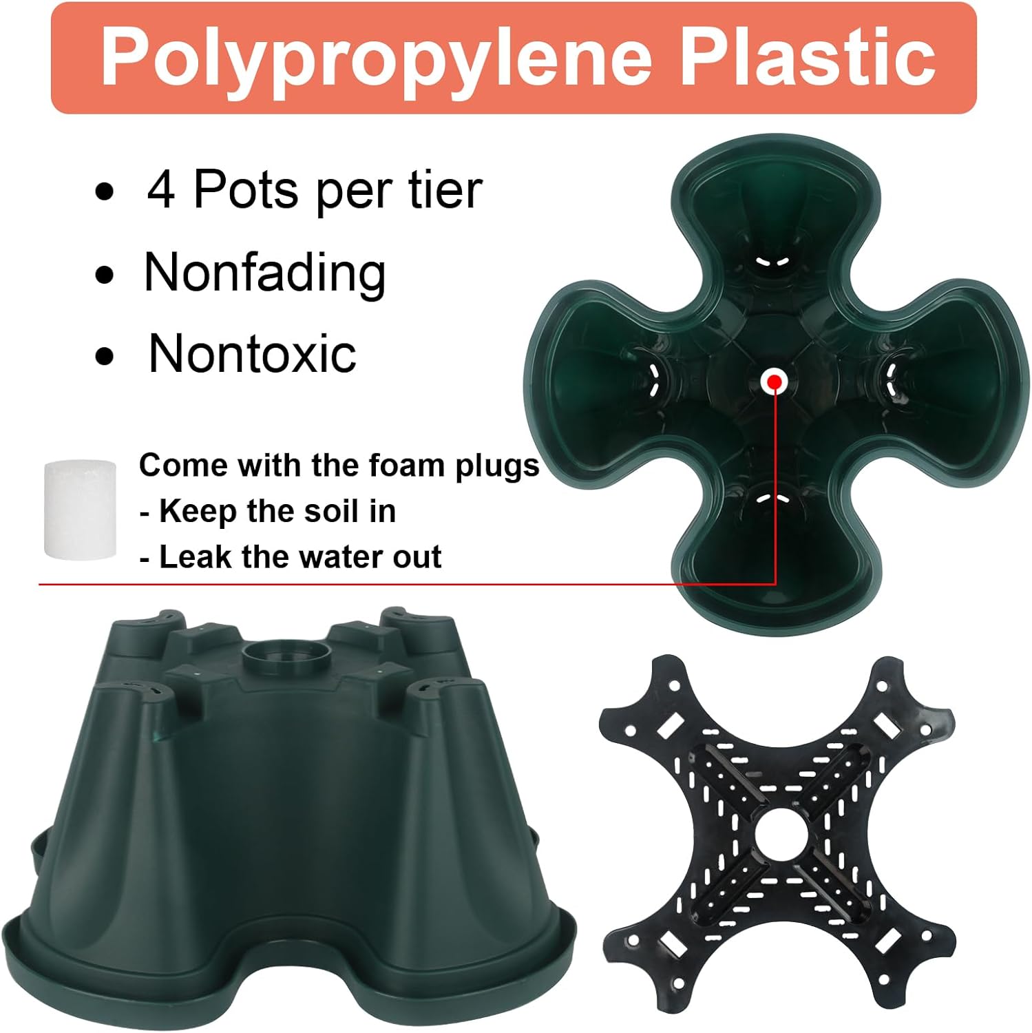 DUNCHATY Stackable Planter, Vertical Strawberry Planter with Garen Tool Set, Indoor/Outdoor 5 Tier Herb Planter Pots for Growing Vegetables and Succulents, Pine Green