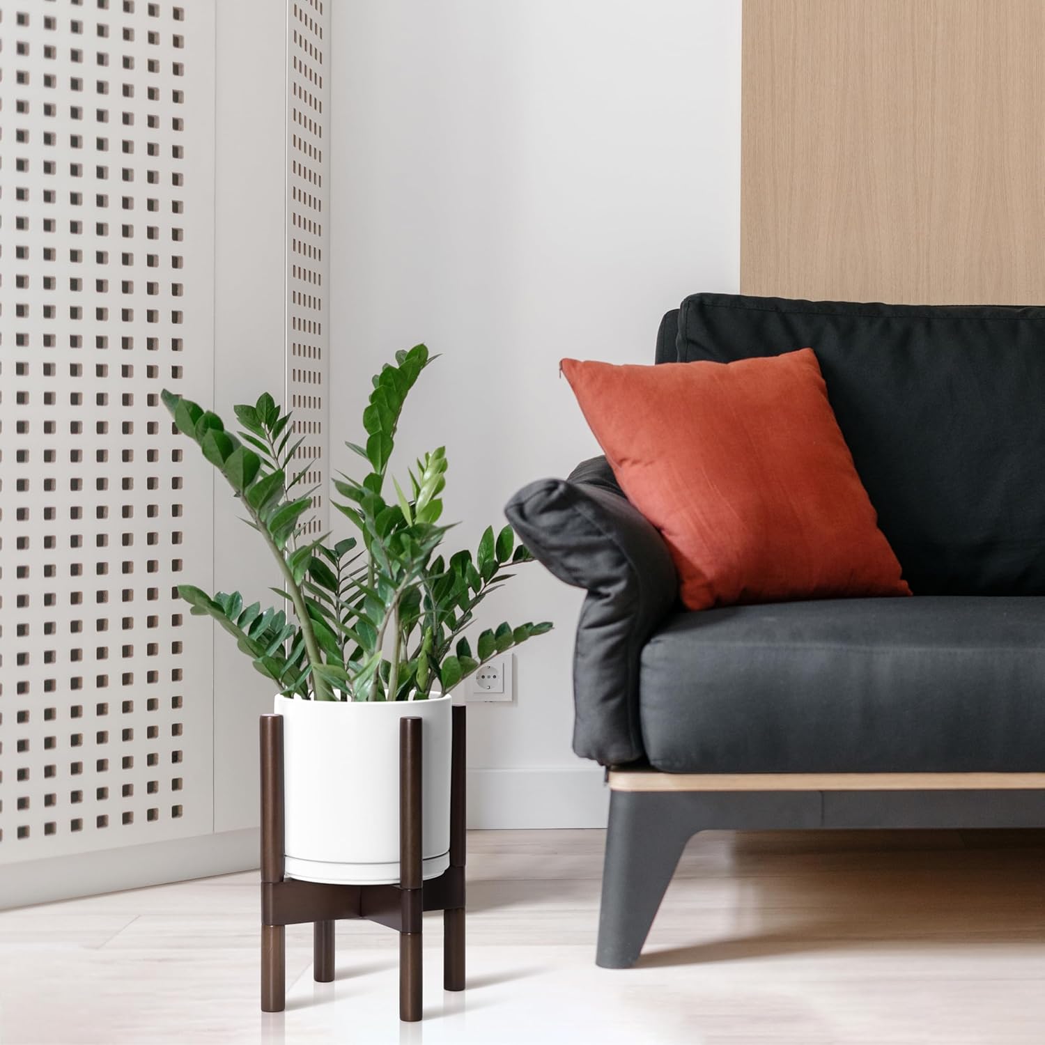 - A Complete Set: Mid-century ceramic planter, combined with a sculptural, solid wood stand that match perfectly together and looks great in anywhere.
