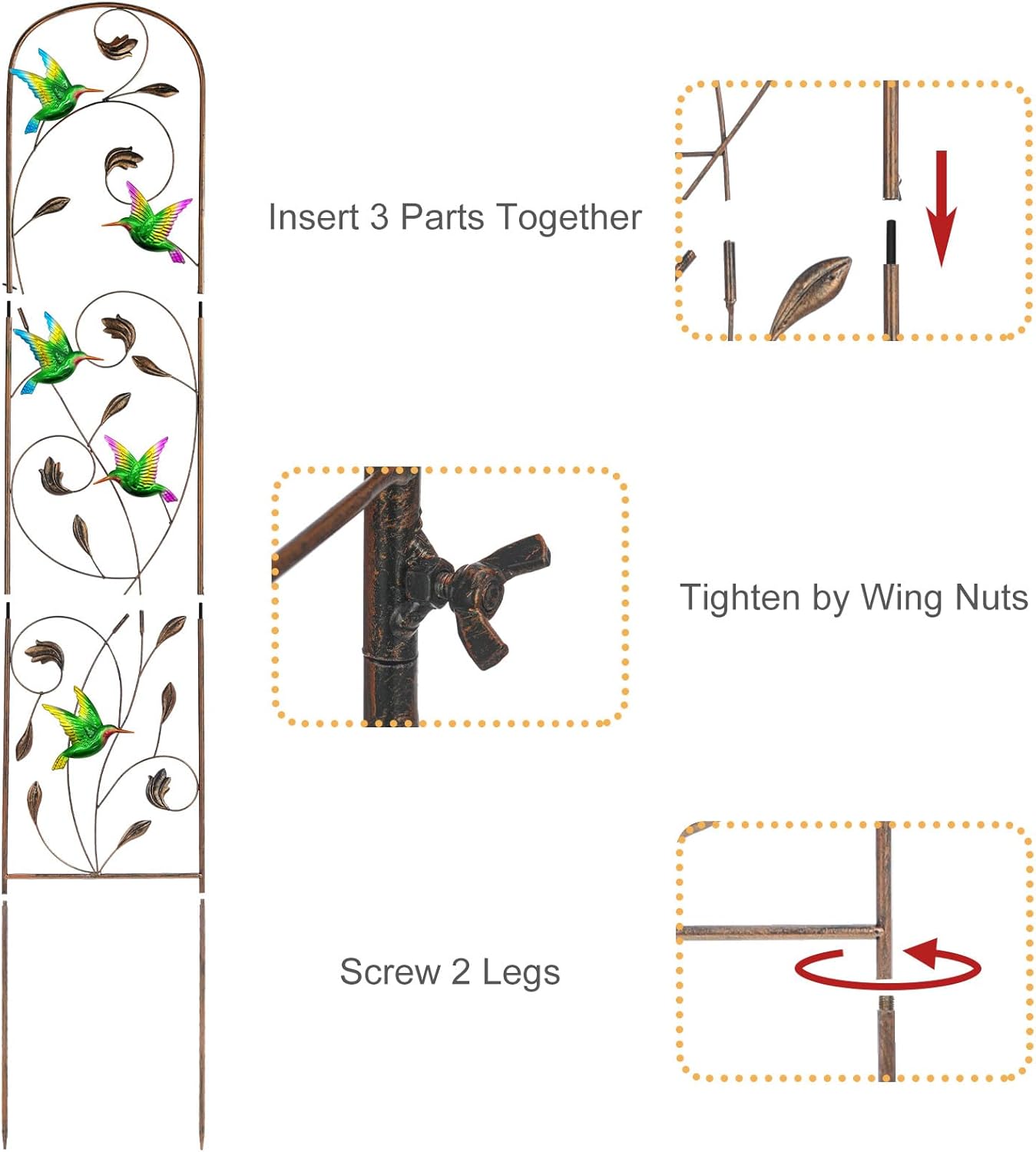 - 【Install & Clean】 Some simple assembly is required, just insert the 3 panels and tighten by wing nuts, then screw the 2 legs on. It is designed for long-lasting use outdoor spaces with low maintenance. It adds symbolism and meaning to this artful garden accent.