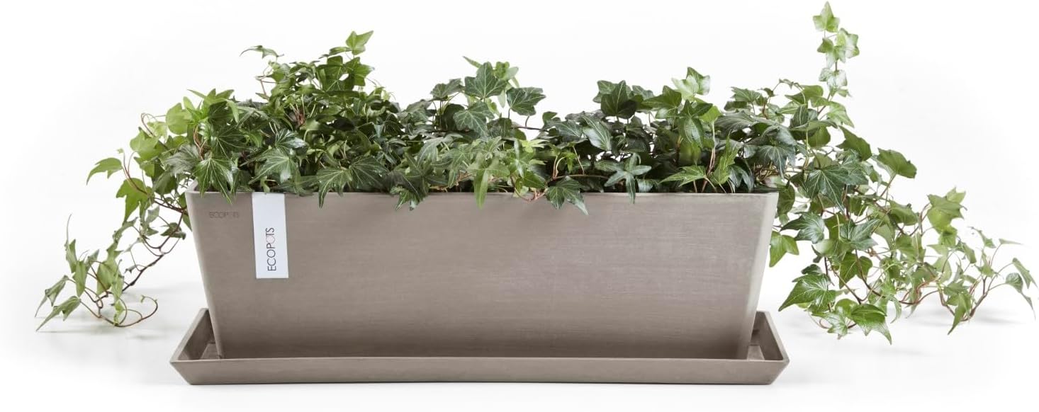 Ecopots Bruges Durable Modern Rectangular Indoor/Outdoor Recycled-Based Composite Flower Pot Planter, Taupe, 17.75"