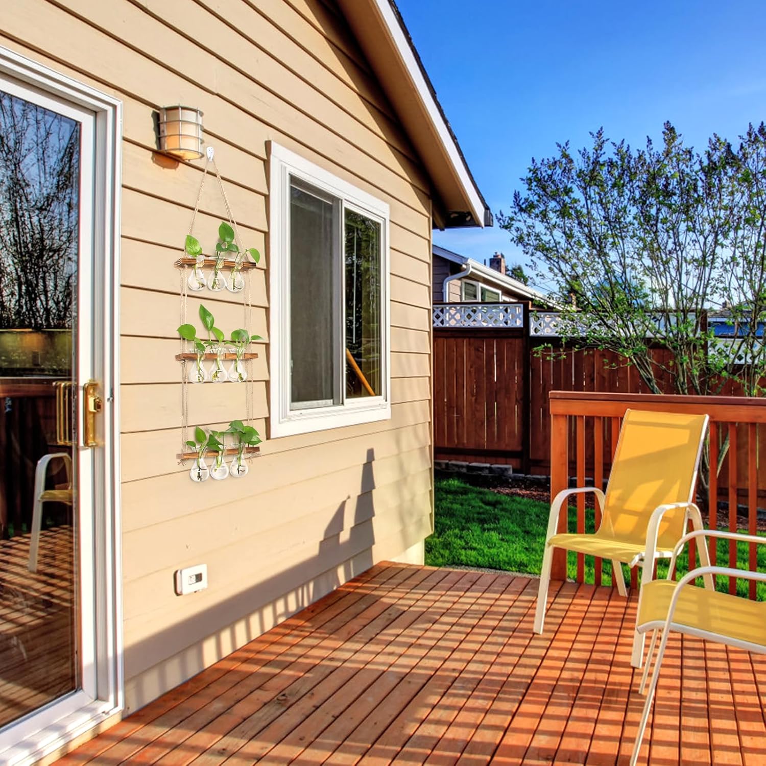 - 【Unique design】A variety of plants can be precisely matched with this three-tiered hanging glass planter's blend of a simple hemp rope and an old-fashioned wooden frame. such as flower cuttings, any other plants you choose, the African violet, the Pothos vine, the Luck bamboo, etc.A robust pine wood plant stand with a triangular base and a smooth surface was built. Carbonization at a high temperature of 300 °C guarantees that the texture will remain intact and won't fade, shrink, warp, or break.