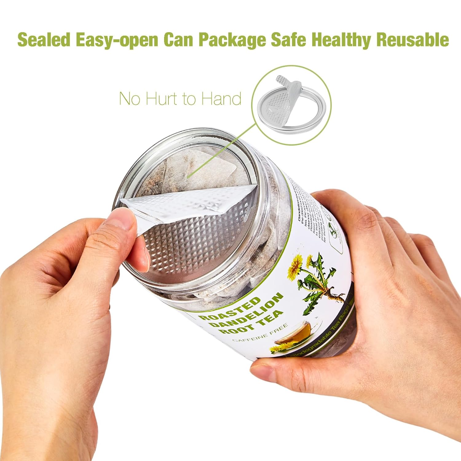 - [ Sealed Easy-Open Can & Biodegradable Tea Bags ] : Our dandelion root tea organic are made of natural corn fiber, which is eco-friendly. They contain no strings, wrapping, staples, adhesive, bleach, or dyes - 100% safe. Each can contains 50 tea bags sealed for freshness, ensuring a delicious cup of herbal tea anytime. Just steep a bag in hot water and savor the smooth, comforting taste.