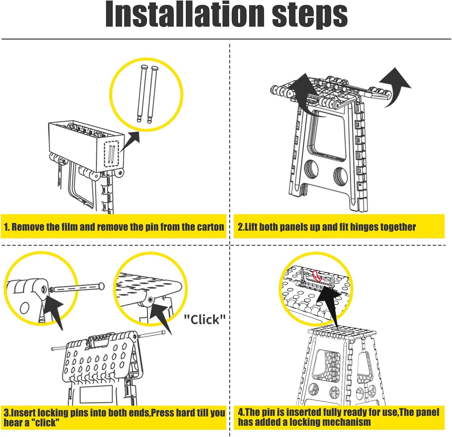 - Widely Use & Portable : Great folding step stool for in the kitchen, bathroom, dining room, office, garden, camping, fishing and more. Carry this quick-fold step stool wherever you go.