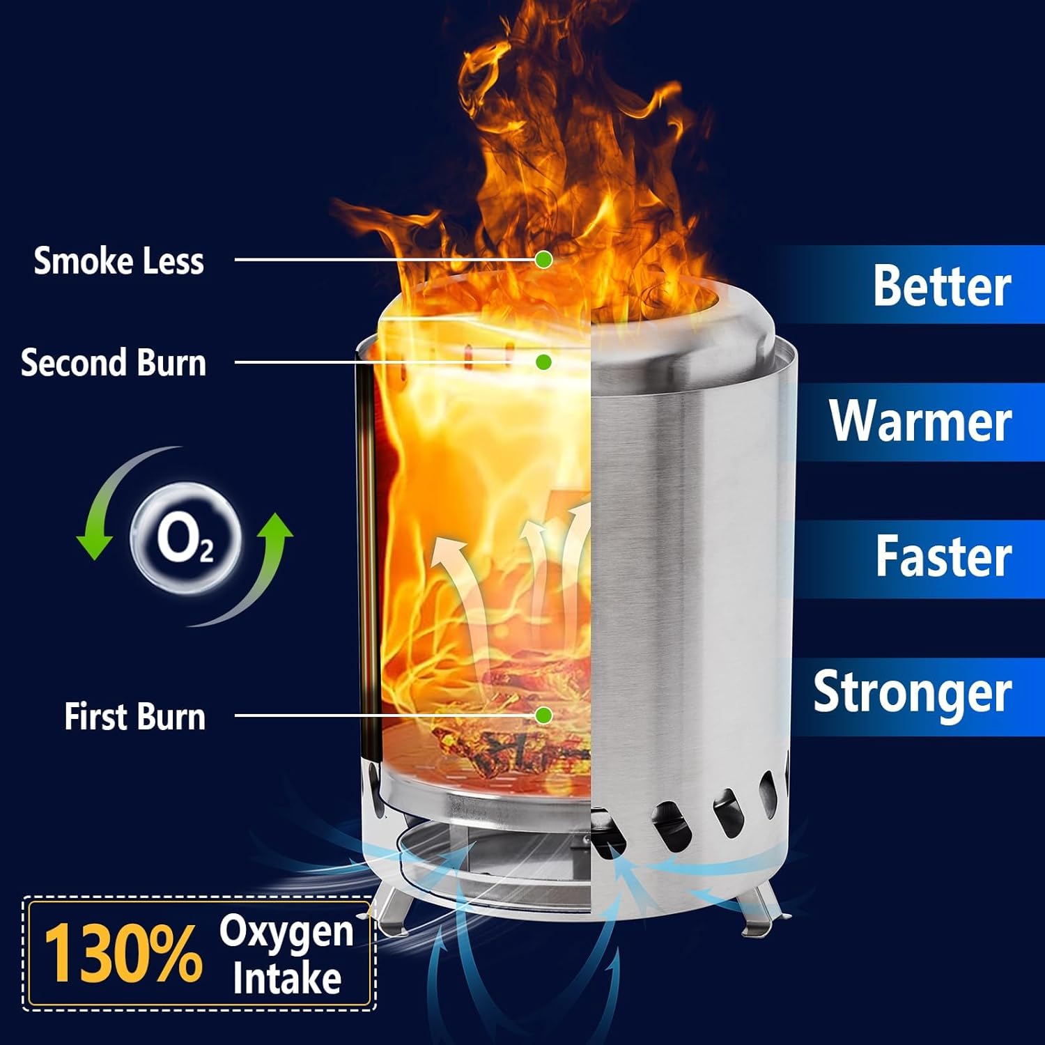 - Advanced Smokeless Technology: Innovative double-wall design with strategic vent holes generates enhanced airflow, dramatically reducing smoke while maintaining optimal burning efficiency