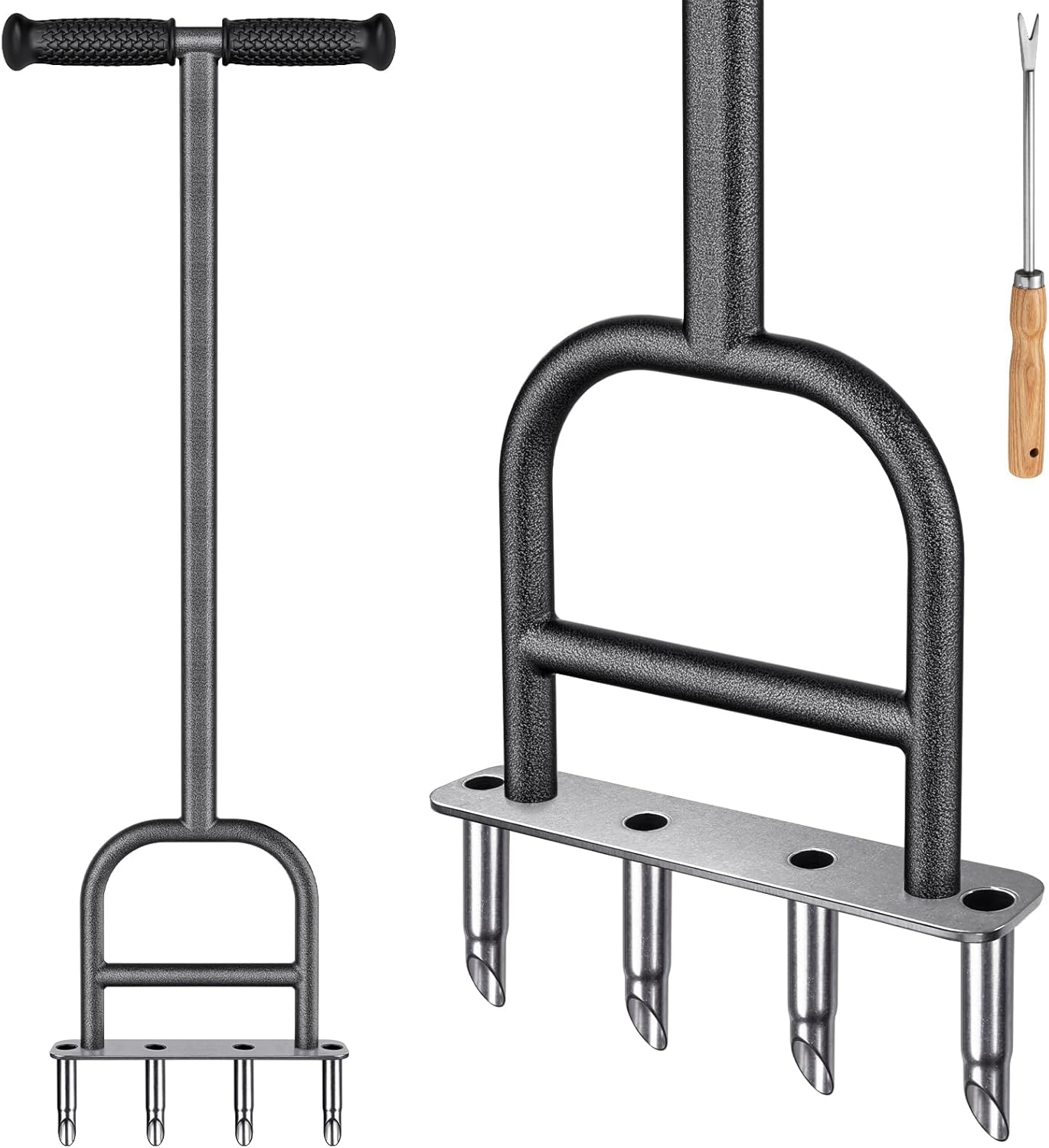 - Stainless Steel Corer Plug: Enjoy the durability and strength of this lawn coring aerator, which is made of all steel with a black powder coated finish, It with stainless steel bottom and corer plug that will not rust or bend.
