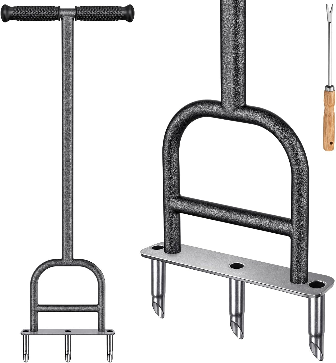 - Easy to Ues: Choose the optimal size and shape of the cores for your lawn, with this lawn coring aerator that has 3 Corer Plug Aerator, each 3.5 inches long and 0.5 inches in diameter, Save time and effort with the easy-to-use and effective lawn corer tool. creating soil plugs that are deep and narrow.