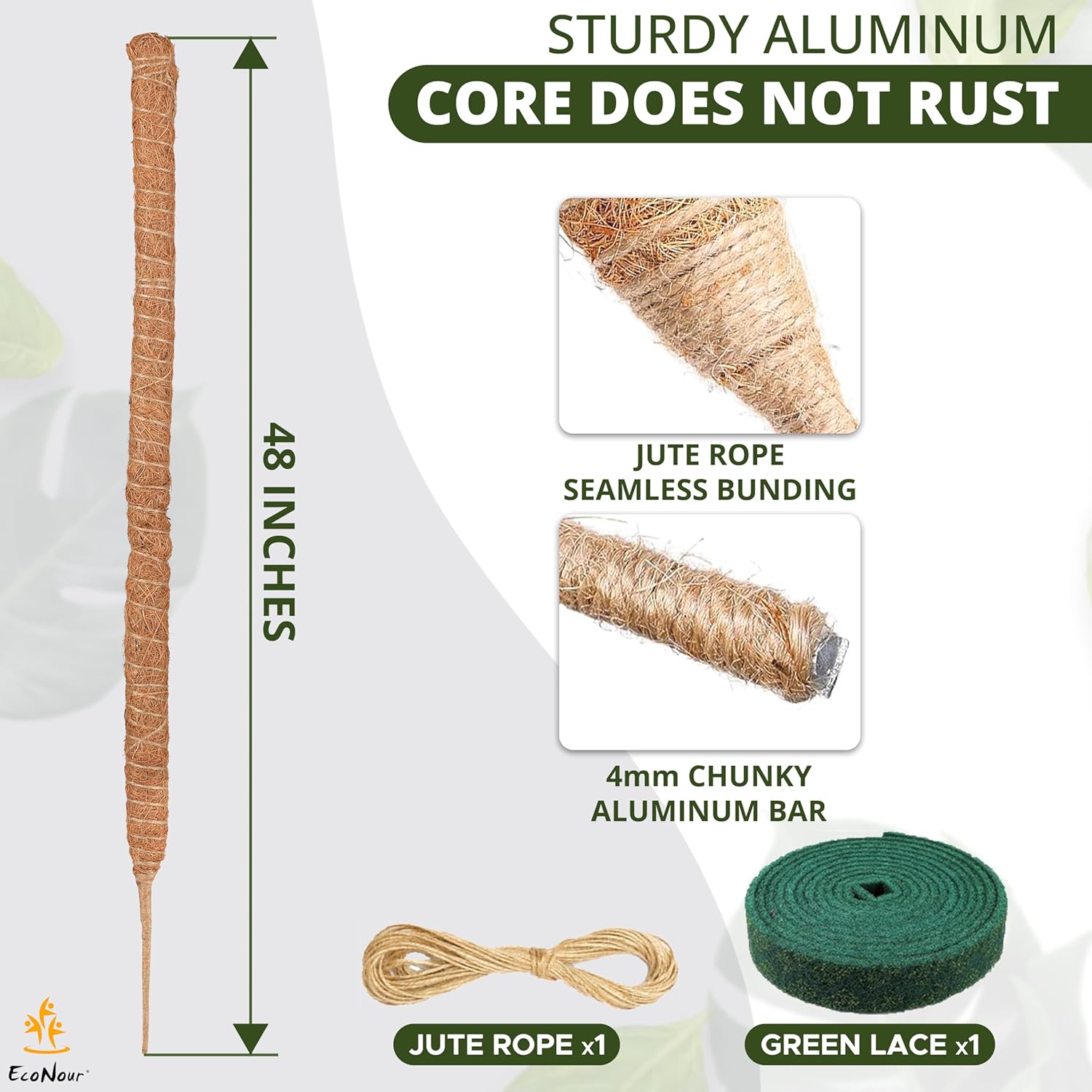 EcoNour Tall Moss Pole for Plants (1-Pack) 48-Inch | Large Monstera Plant Support for Climbing and Growth | Elevate Your Indoor Garden | Tall Plant Support for Indoor Potted Plants to Grow Upwards