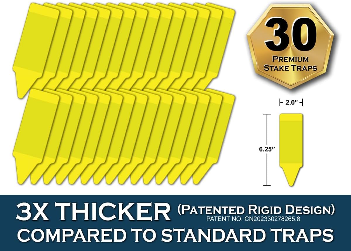 - ā QUALITY DESIGN: While fun shapes may appear charming for gardening accessories, they can potentially disturb your plants or prove challenging to position. Our simple, garden-themed patented stake shape enables easy insertion into any potted plant or hassle-free hanging on trees. Furthermore, our dual-sided glue stake boasts three times the thickness of other standard traps.