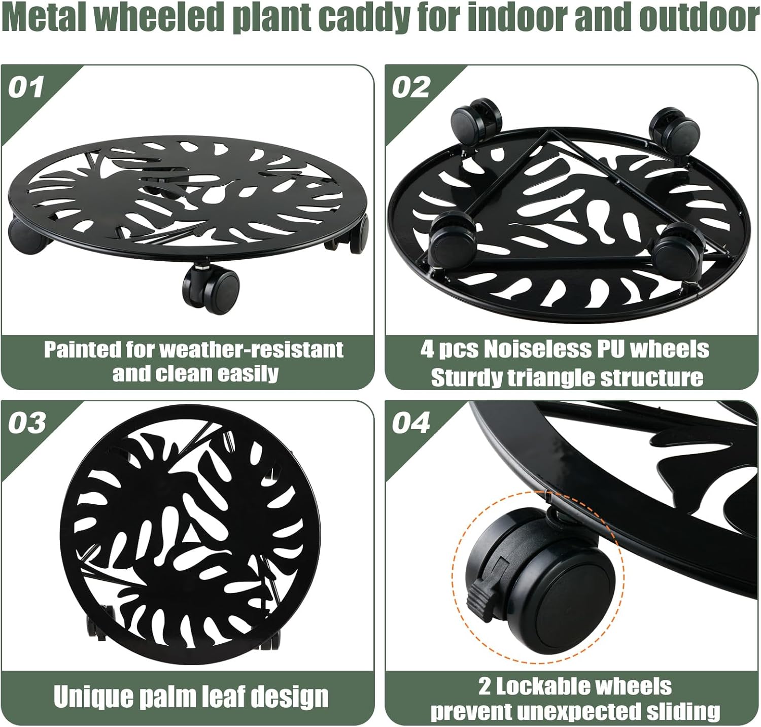 - Sturdy metal construction: Each of the large plant caddy was made from strengthening metal, with strong hardness and toughness for long-lasting performance. No aging and non-fade. Great to hold your large plant pots and roll easily from indoor to outdoor.