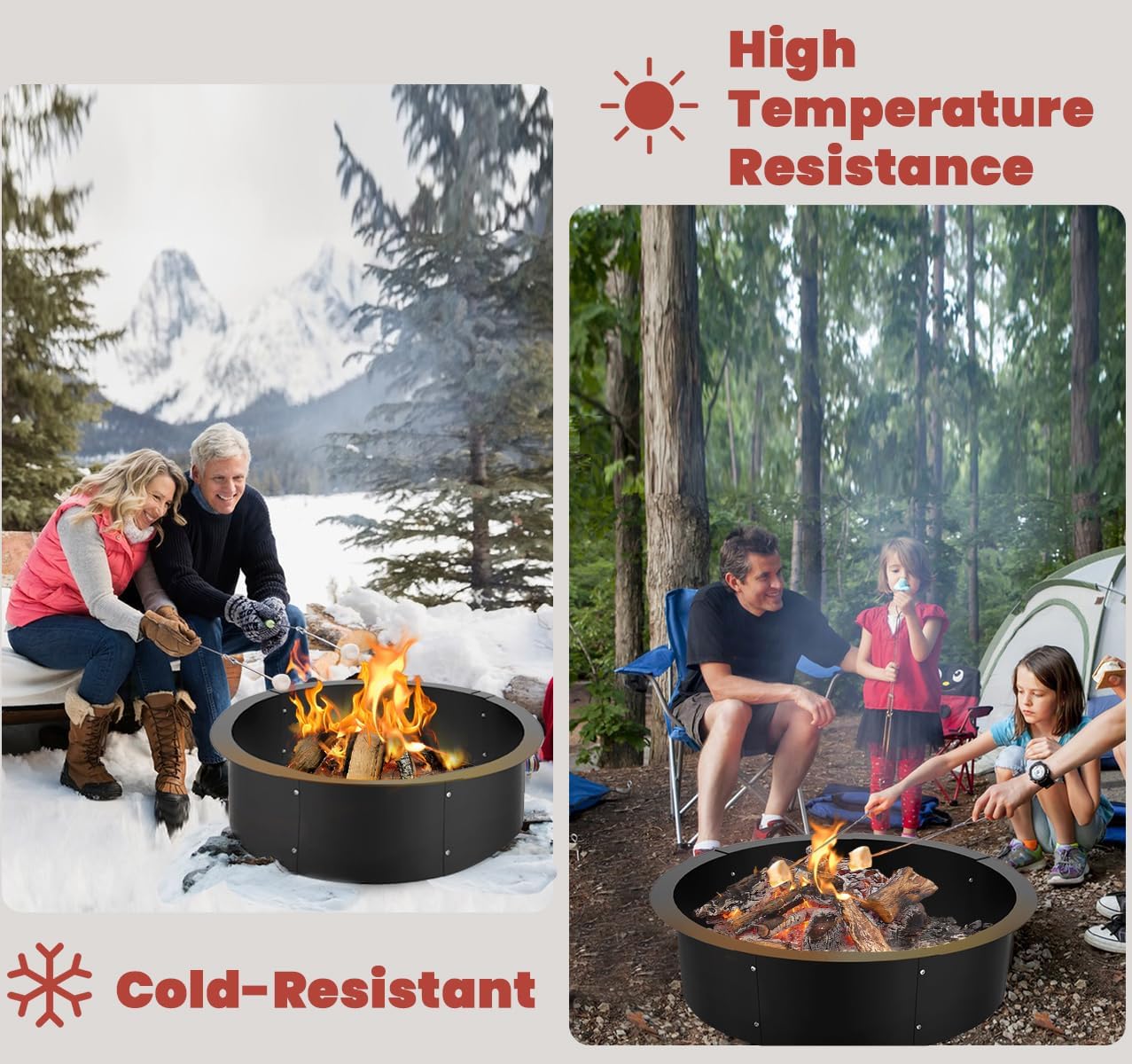 - Thickened & Rugged: The matte black high-temperature powder coating on the surface of the fire ring for outside fire pit, the iron sheet thickened to 1.5mm, increased the durability of the steel fire pit ring, the coating is not easy to peel, more durable, can be used repeatedly.