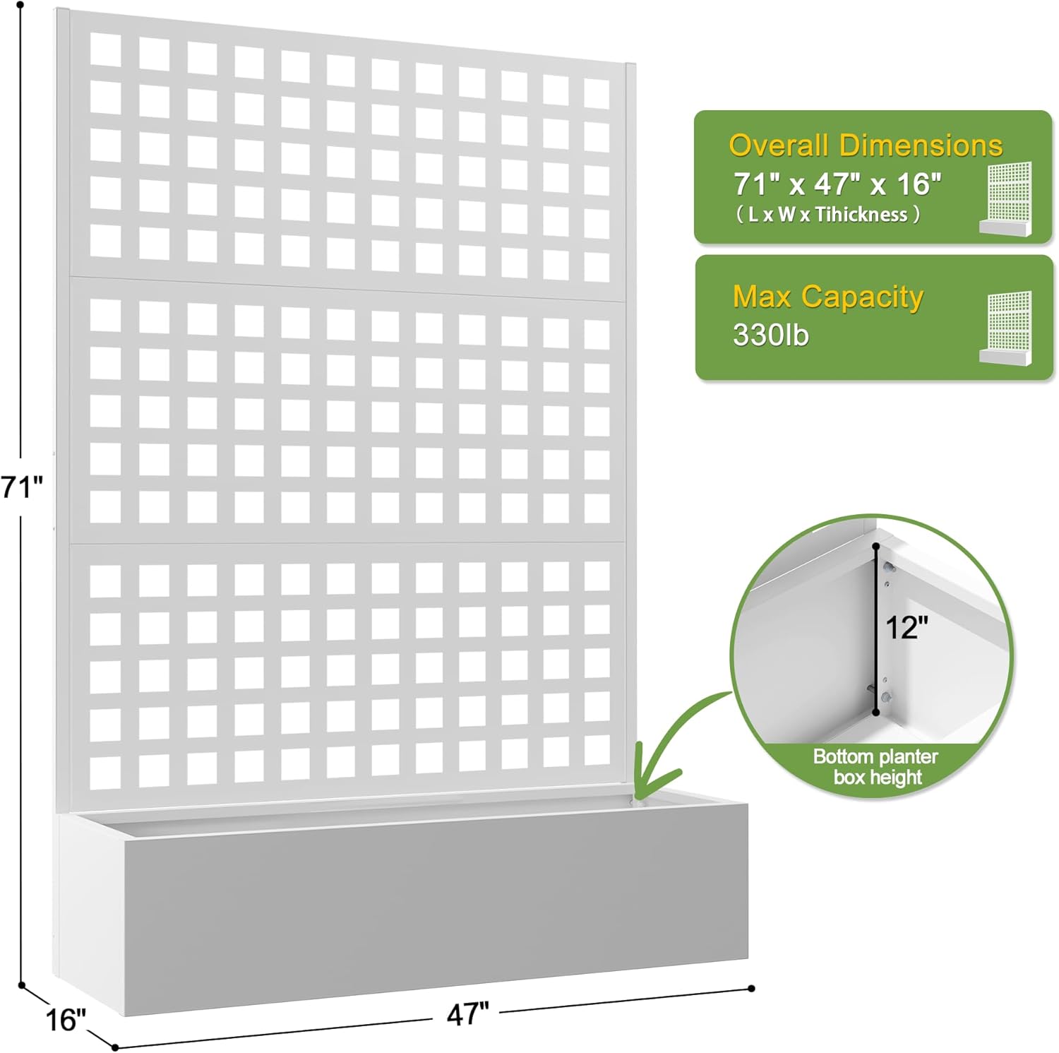 FENCY Metal Raised Garden Bed with Trellis, Metal Planter Box with Trellis, Garden Box for Climbing Plants Vegetable, 47''Lx16''Wx71''H Garden Bed with Drainage Holes(White)